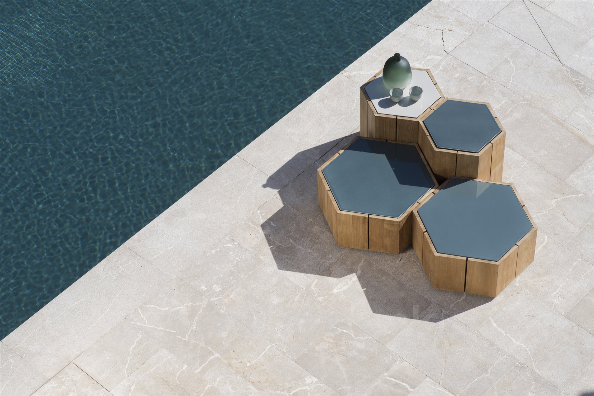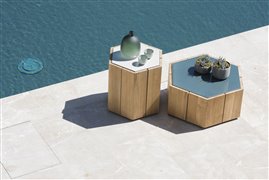 Dizajnové vonkajšie konferenčné a odkladacie stolíky od spoločnosti Tribu.