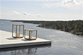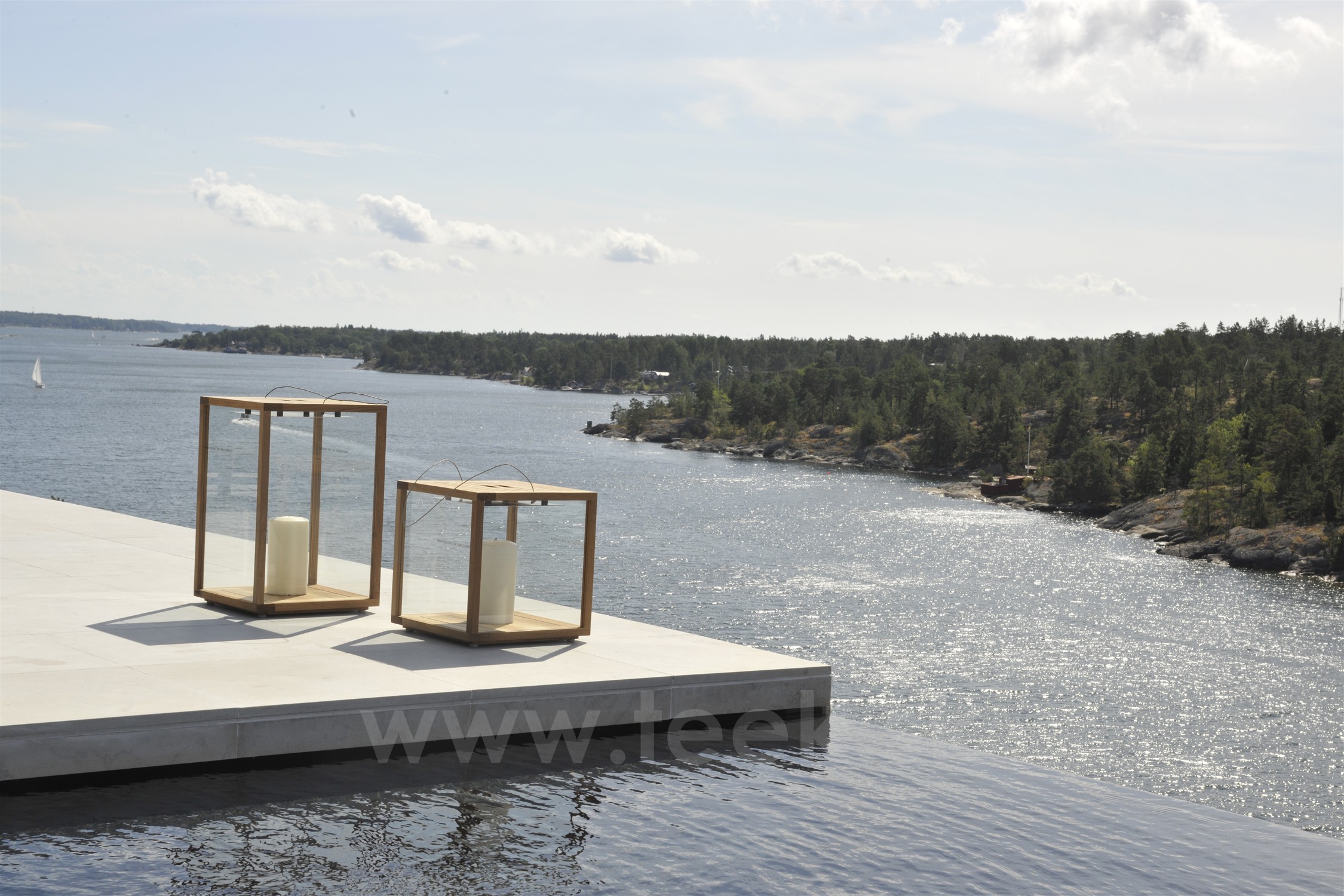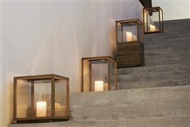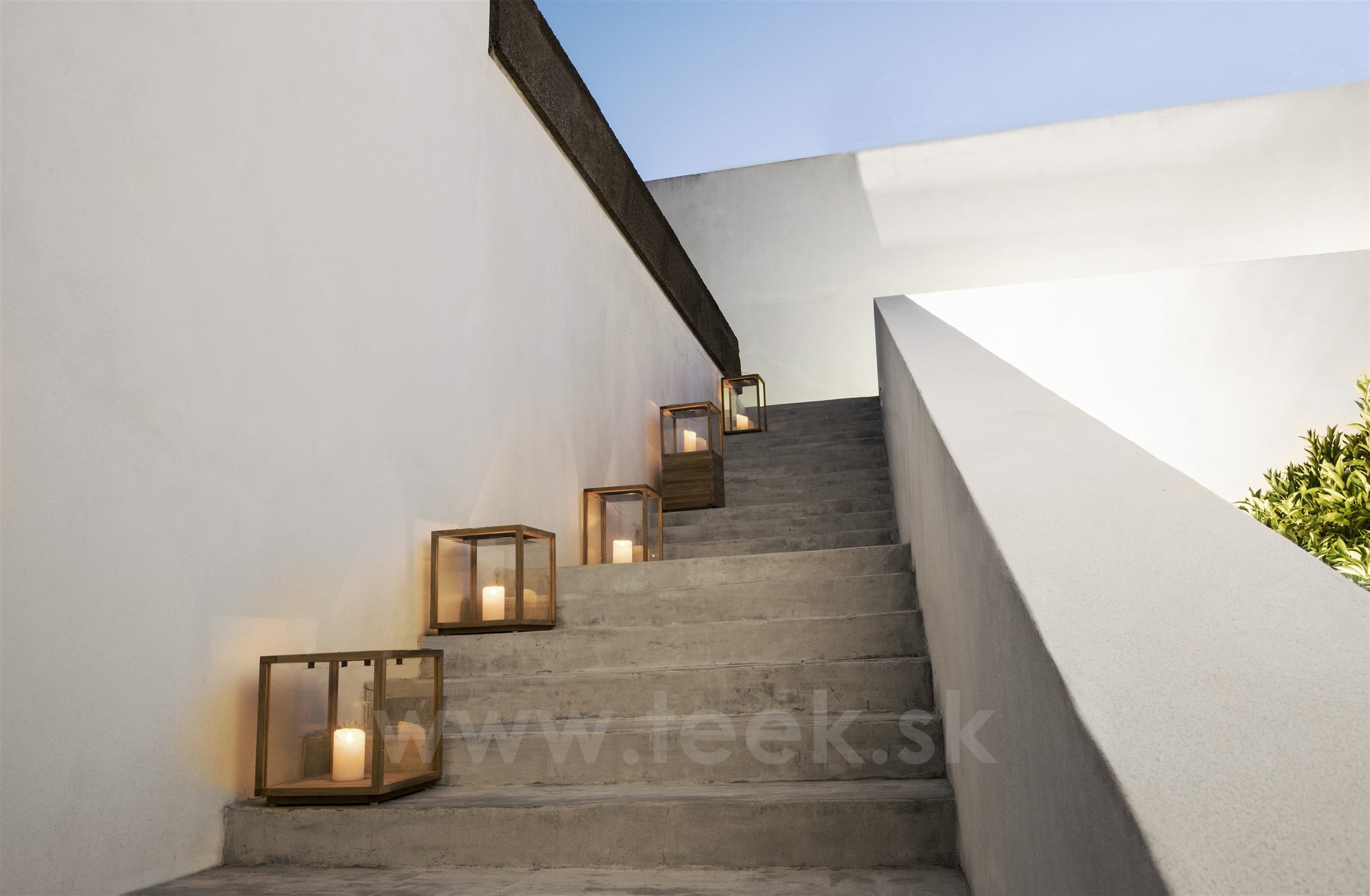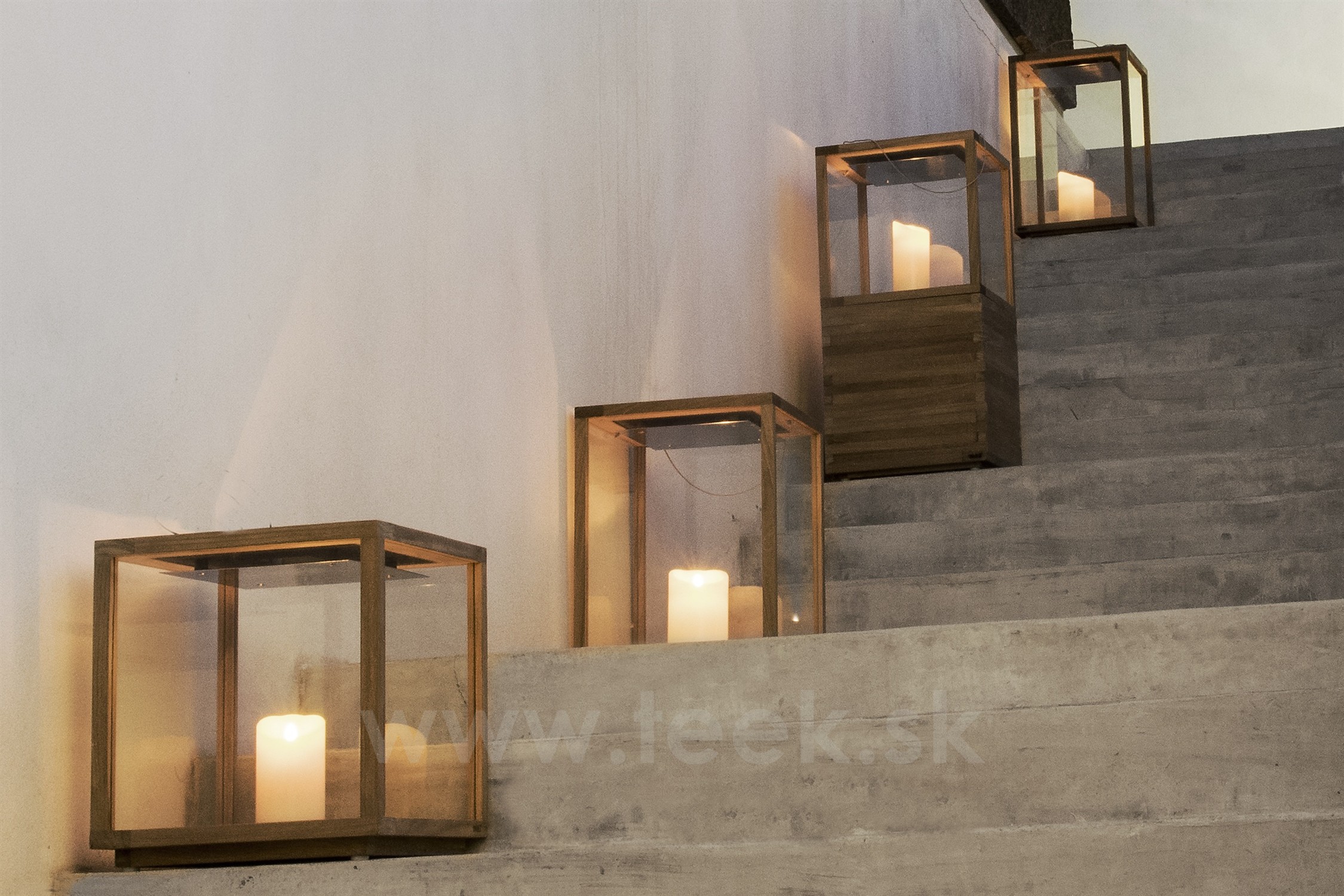 Štýlové vonkajšie svietniky Tribu z teakového dreva.