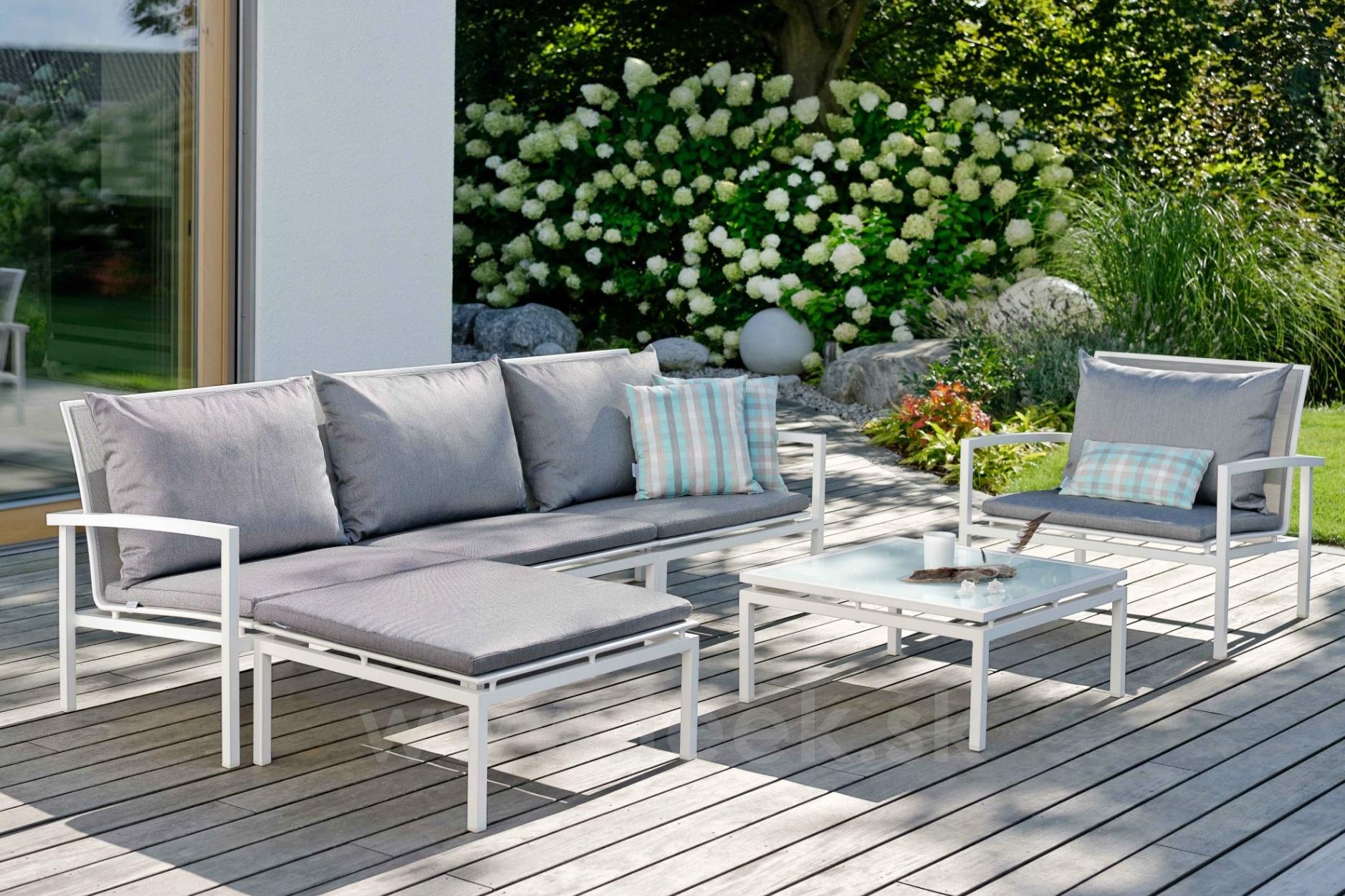 - Dostupné sedacie a chrbtové vankúše: poťah vonkajšia tkanina (100 % akryl), výplň bežná pena (musí byť chránená pred dažďom.) Poťahy sú odnímateľné. Výplň je bežná pena - musí byť chránená pred dažďom.