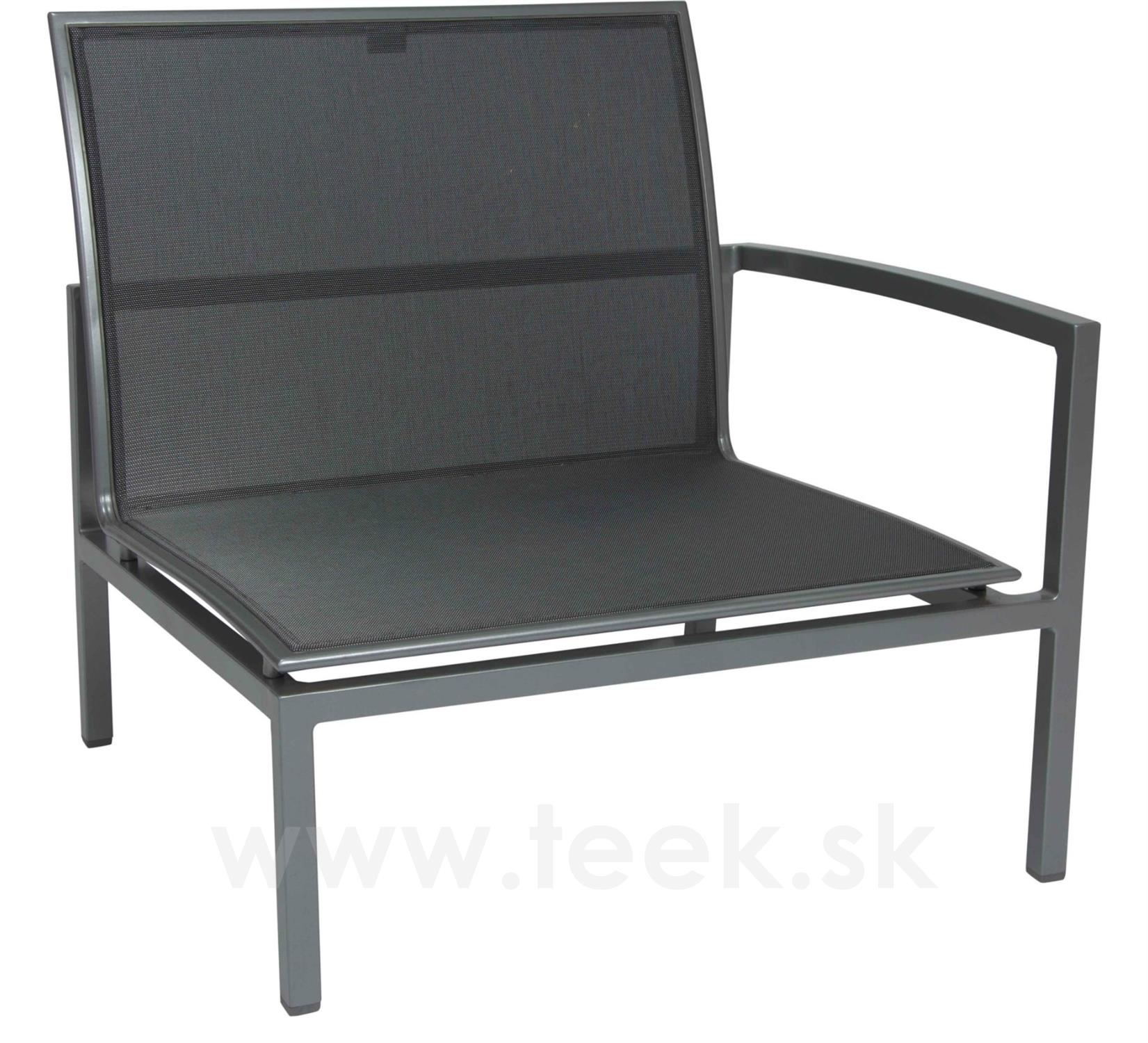 Koncový/rohový diel ľavý Skelby, Stern, 82x81x80 cm, rám lakovaný hliníkovou farbou sivo-čiernej farby (antracit), opletený textíliou žíhanou na čierno (karbón)