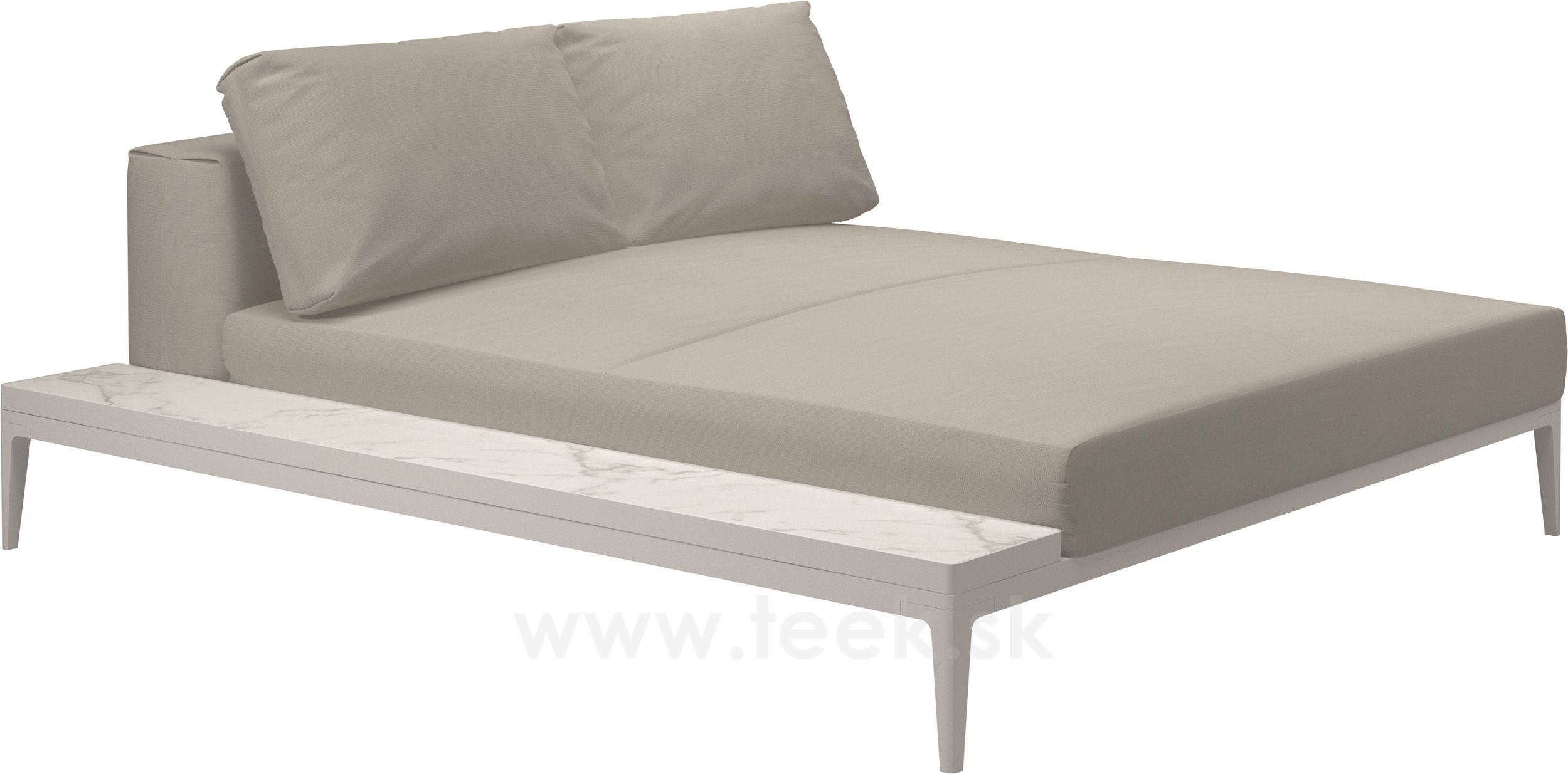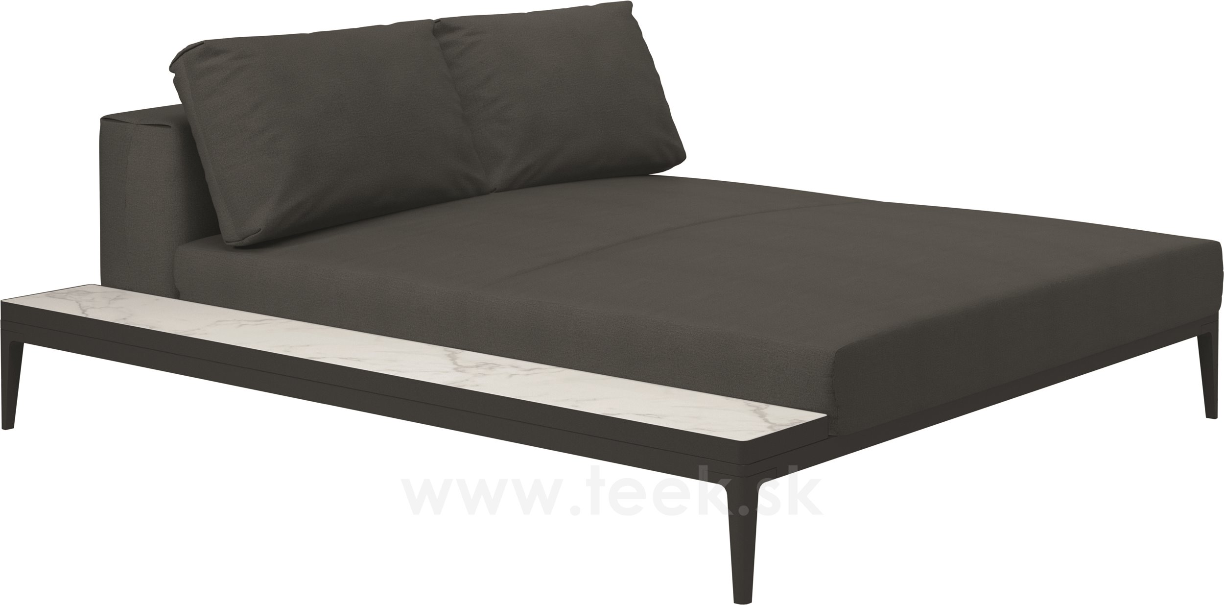 Postelový díl 2-místný pravostranný/levostranný s keramickým stolkem Grid, Gloster, 180x180x85 cm, rám hliník barva meteor, keramika dekor Bianco, sedáky kat. B barva dle vzorníku