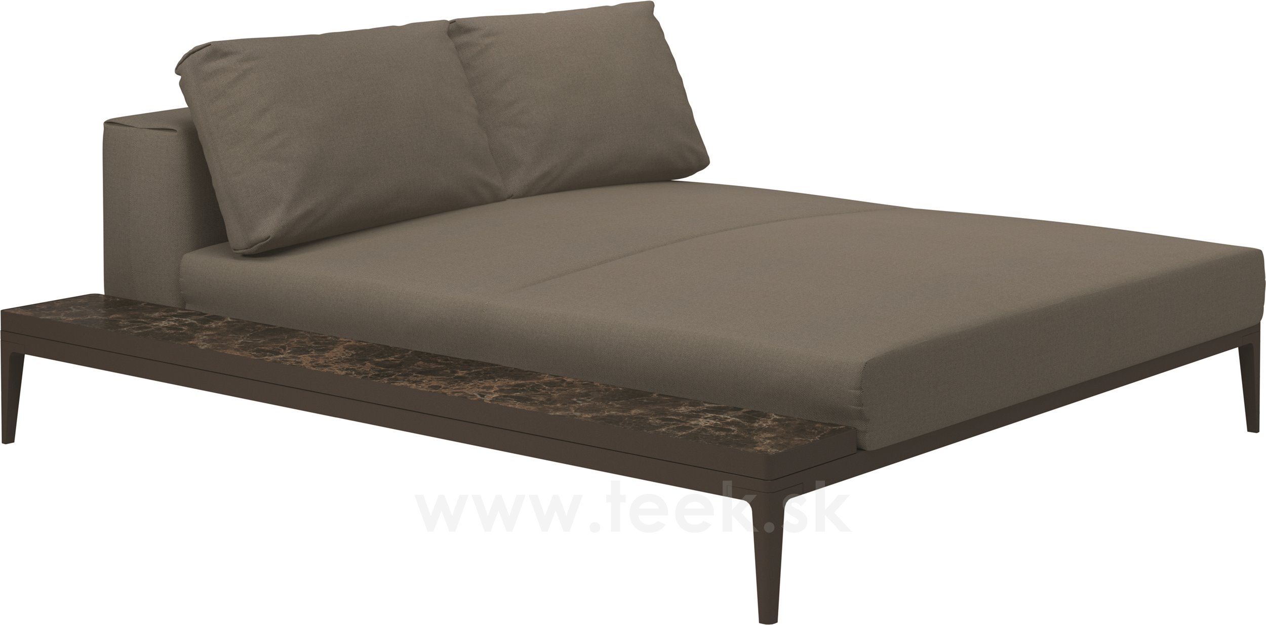 Postelový díl 2-místný pravostranný/levostranný s keramickým stolkem Grid, Gloster, 180x180x85 cm, rám hliník barva java, keramika dekor Emperor, sedáky kat. B barva dle vzorníku