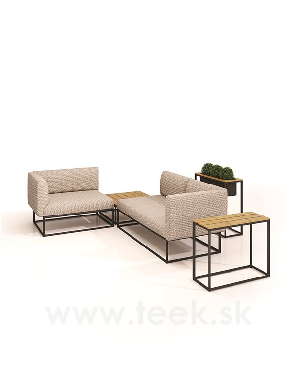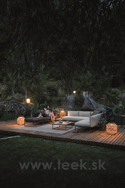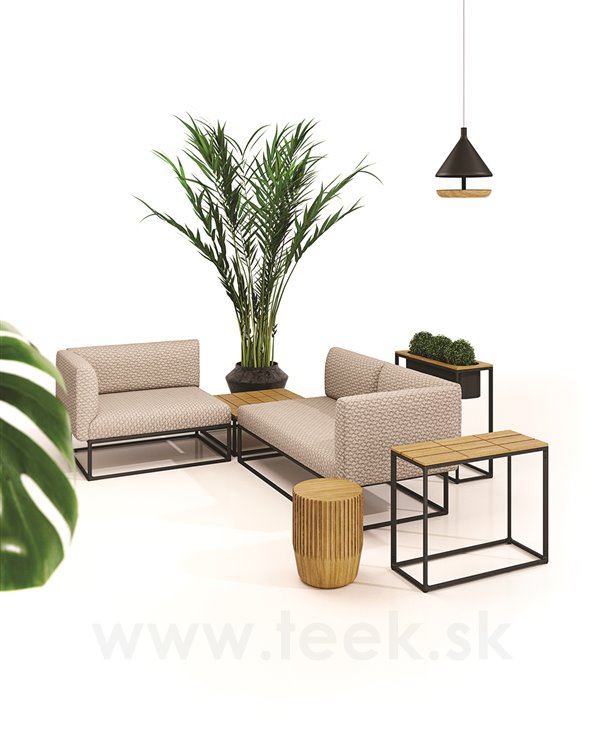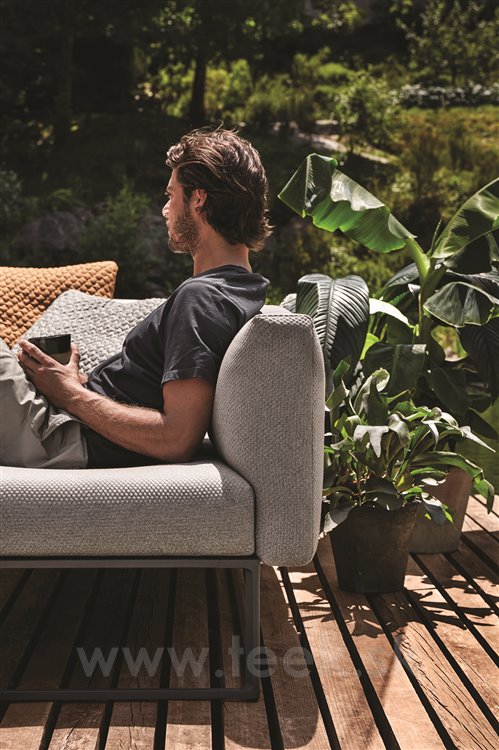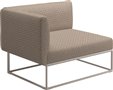 Dokončovacia časť modulárnej záhradnej sedacej súpravy Maya od spoločnosti Gloster. Rám je vyrobený z lakovaného hliníka, čalúnenie je z vonkajších odolných látok. Výplne sú vyrobené z rýchloschnúcej peny, takže tento kus môže byť vonku po celý rok. K dispozícii vo viacerých veľkostiach.