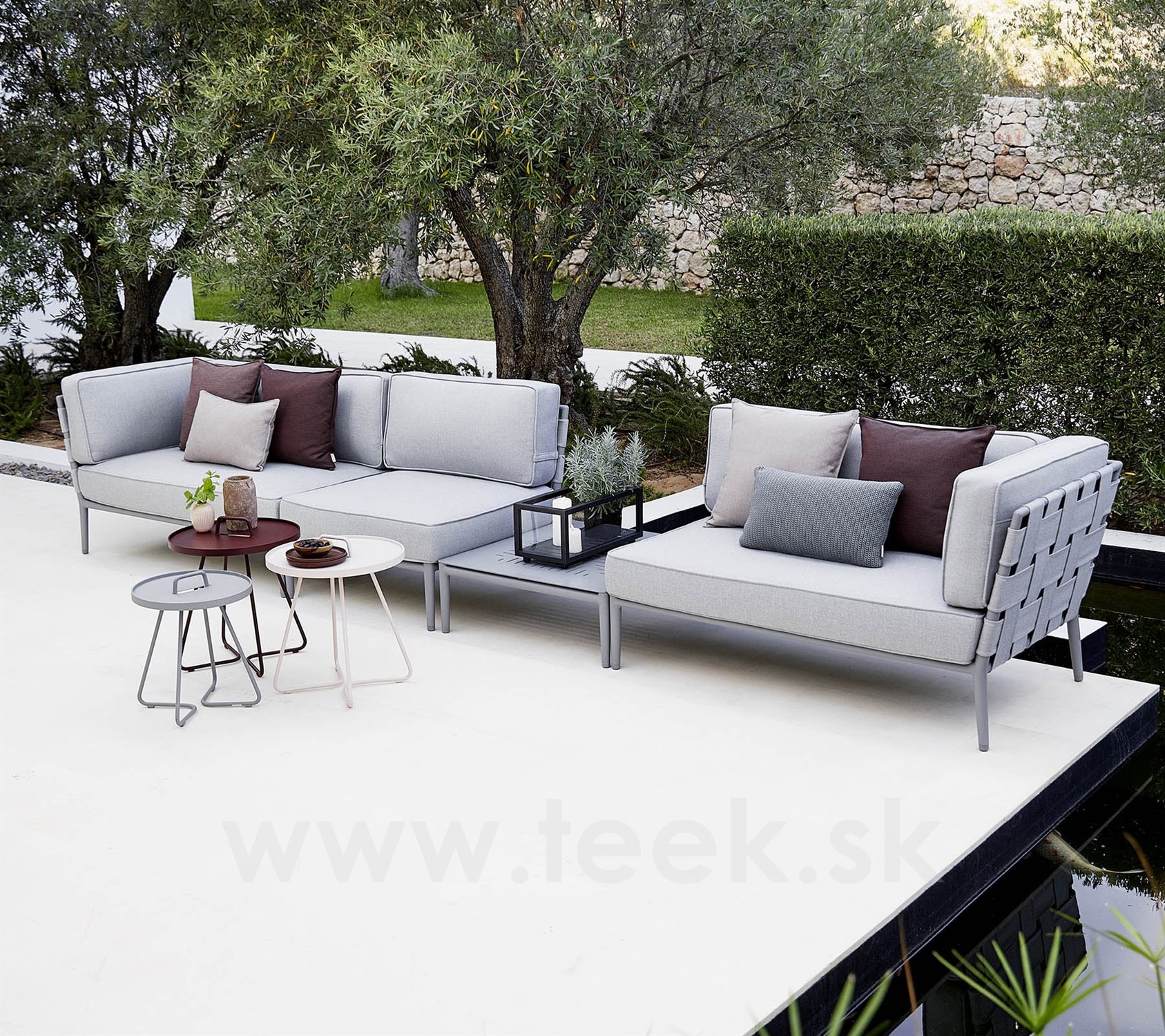 Ukončovací/rohový pravostranný díl Conic, Cane-line, 140x82x82 cm, rám hliník barva grey, pásový výplet a sedáky venkovní látka barva AirTouch grey