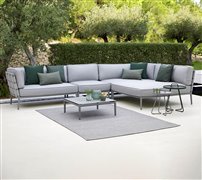 Ukončovací/rohový pravostranný díl Conic, Cane-line, 140x82x82 cm, rám hliník barva light grey, pásový výplet a sedáky venkovní látka barva AirTouch light grey