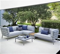 Modulová 2-miestna pohovka z vonkajšej tkaniny.