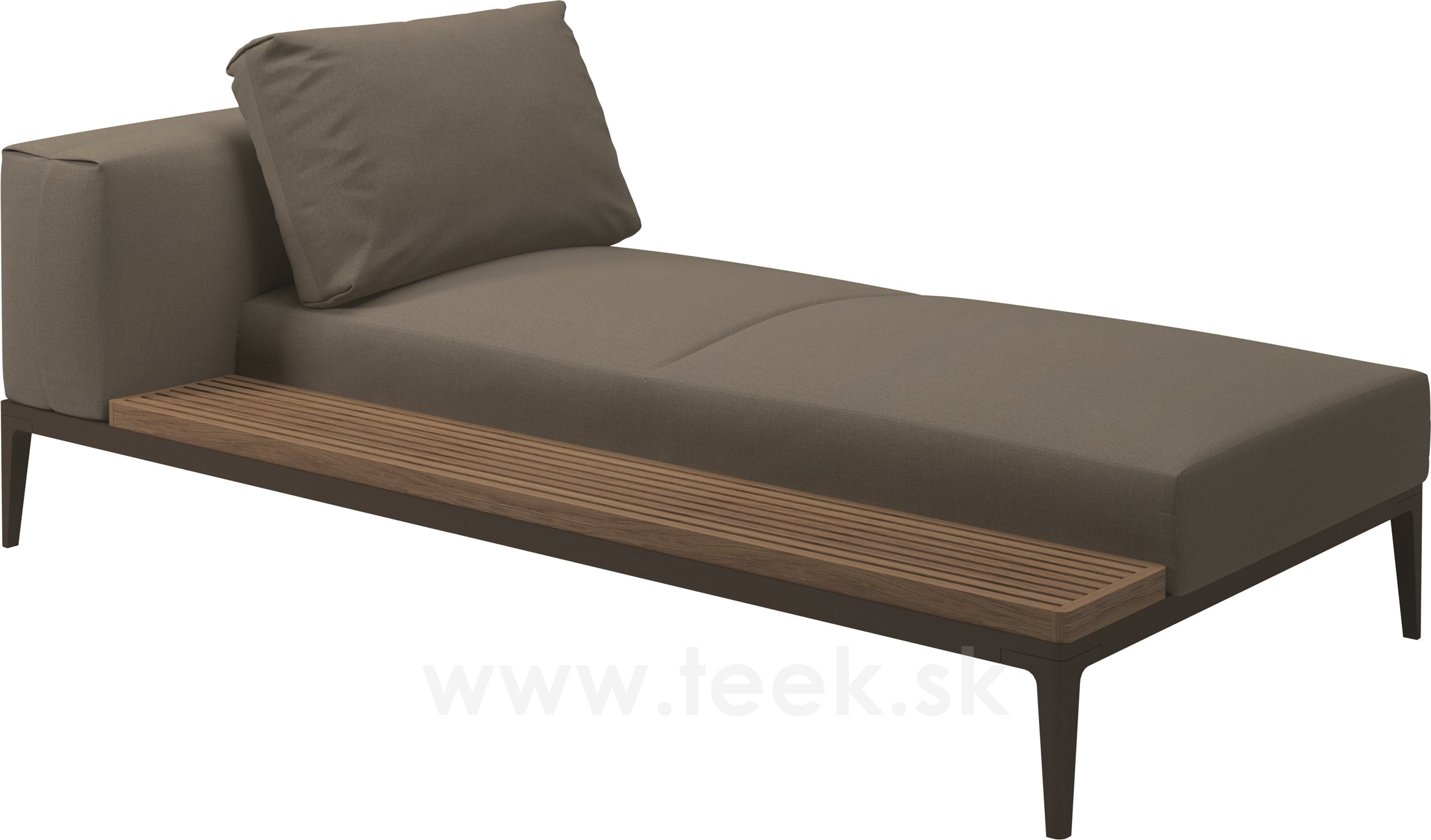 Lehátkový díl 1-místný pravostranný/levostranný s teakovou platformou Grid, Gloster, 206x103x85 cm, rám hliník barva java, sedáky kat. B barva dle vzorníku