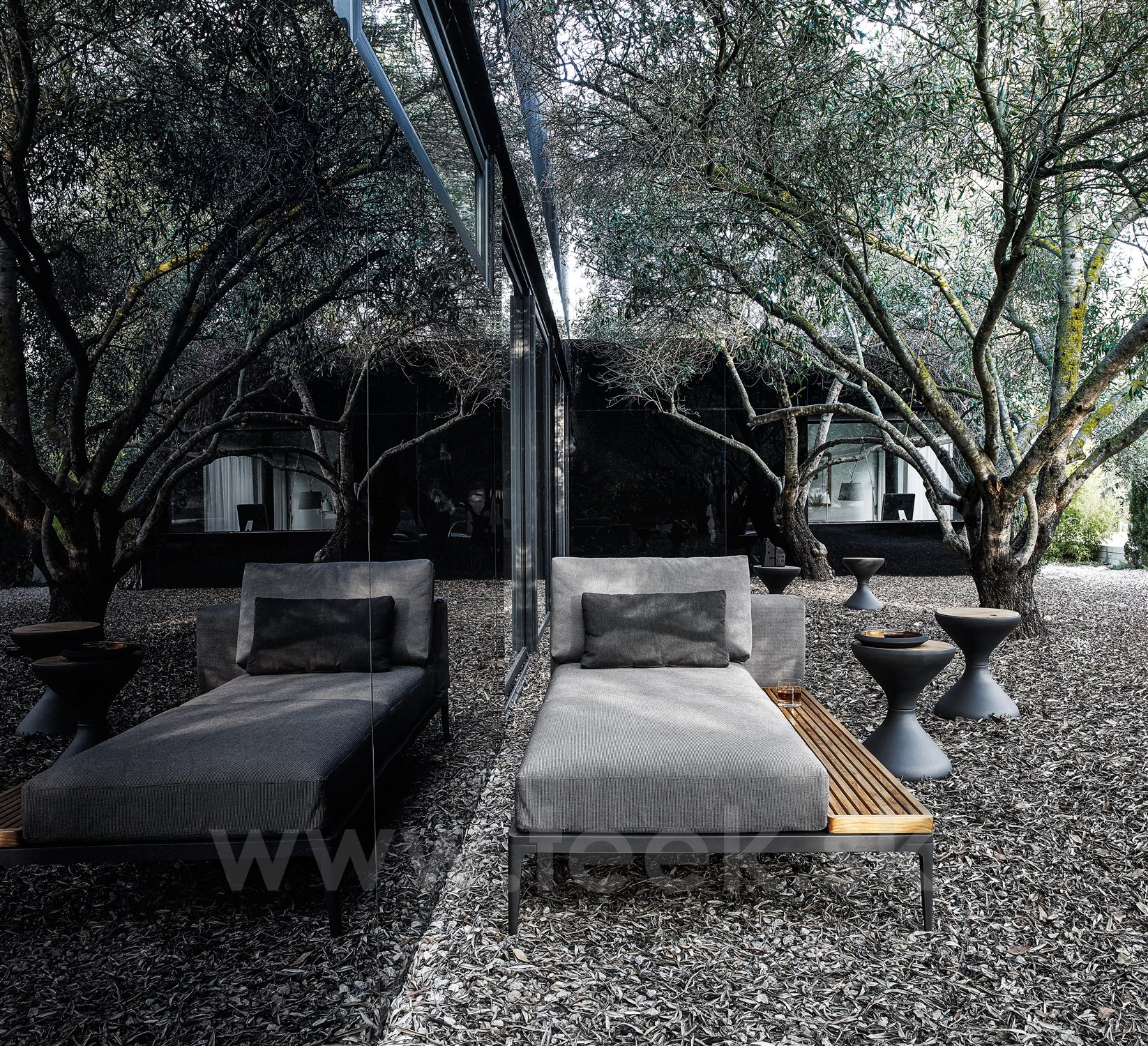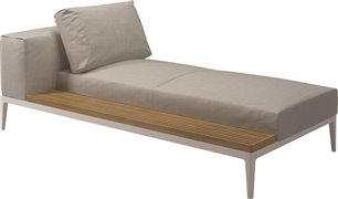 Lehátkový díl 1-místný pravostranný/levostranný s teakovou platformou Grid, Gloster, 206x103x85 cm, rám hliník barva meteor, sedáky kat. C barva dle vzorníku