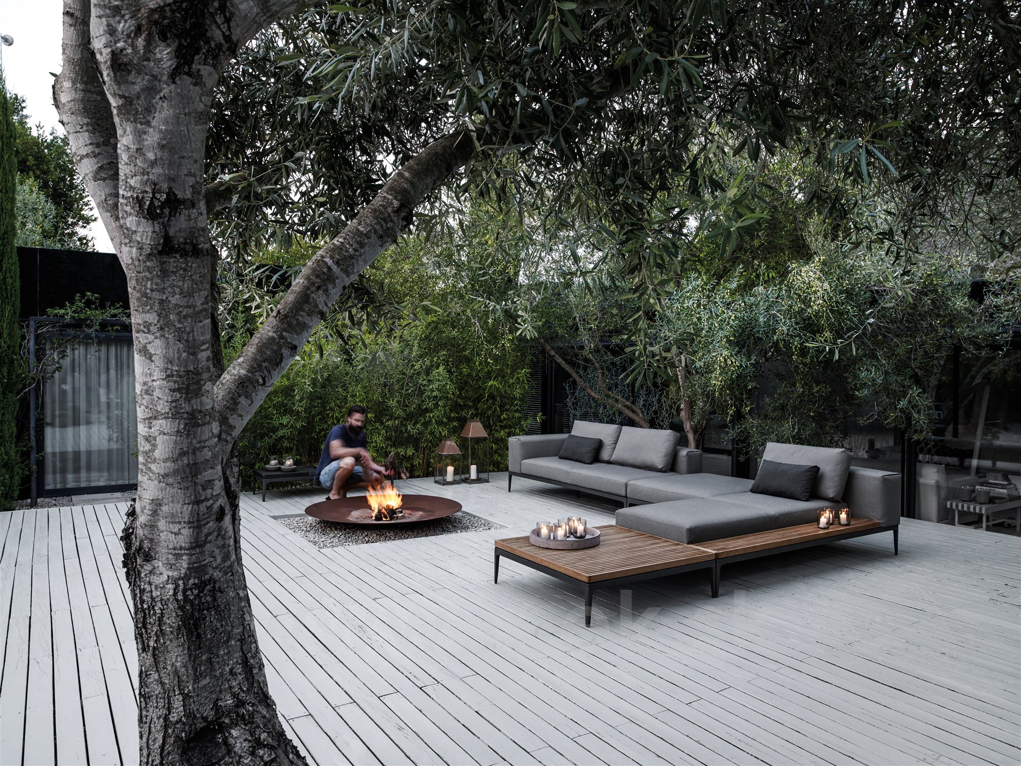Koncový relaxačný diel s úložným stolíkom z teakového dreva Grid od spoločnosti Gloster. Súčasť modulárnej záhradnej sedacej a relaxačnej súpravy s vysokokvalitným vonkajším textilným čalúnením a rýchloschnúcimi výplňami na hliníkovom lakovanom ráme. Vankúše na sedenie sú určené na trvalé vonkajšie použitie. Vyberte si zo širokej ponuky farieb látok. Orientácia súpravy je možná na pravú alebo ľavú stranu.