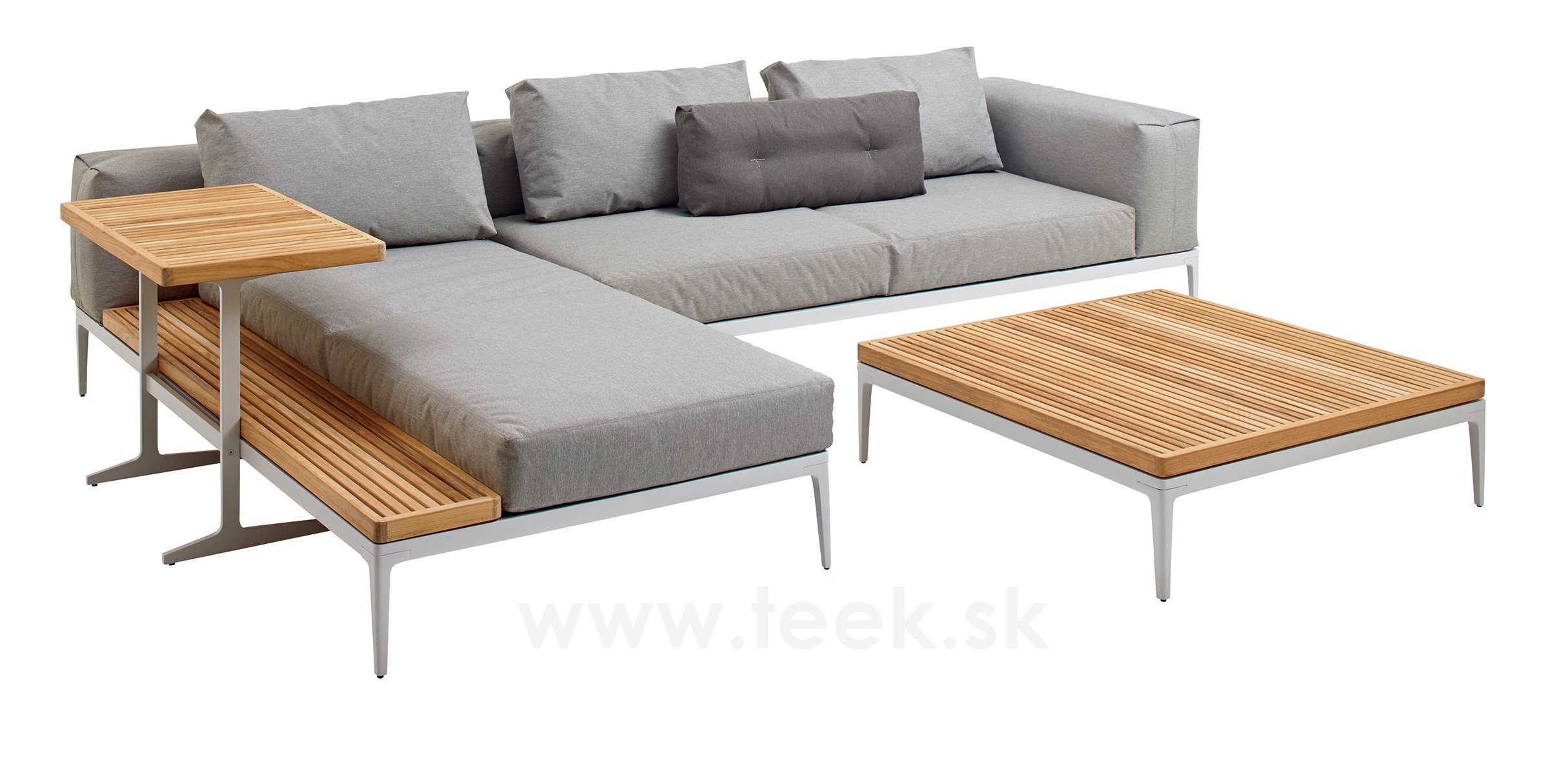 Lehátkový díl 1-místný pravostranný/levostranný s teakovou platformou Grid, Gloster, 206x103x85 cm, rám hliník barva white, sedáky kat. C barva dle vzorníku