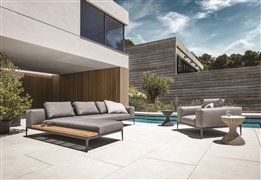 Lehátkový díl 1-místný pravostranný/levostranný s teakovou platformou Grid, Gloster, 206x103x85 cm, rám hliník barva meteor, sedáky kat. B barva dle vzorníku