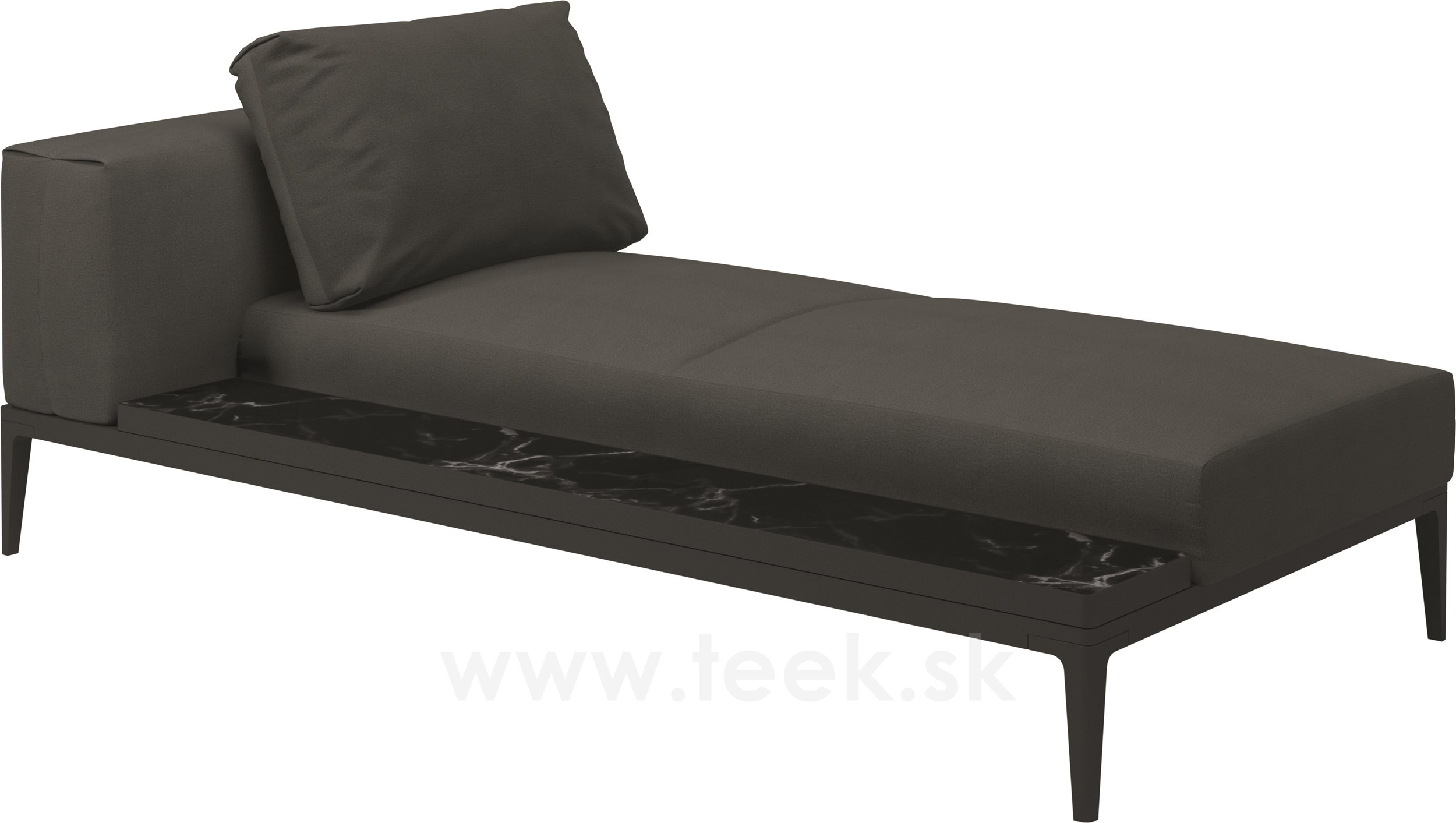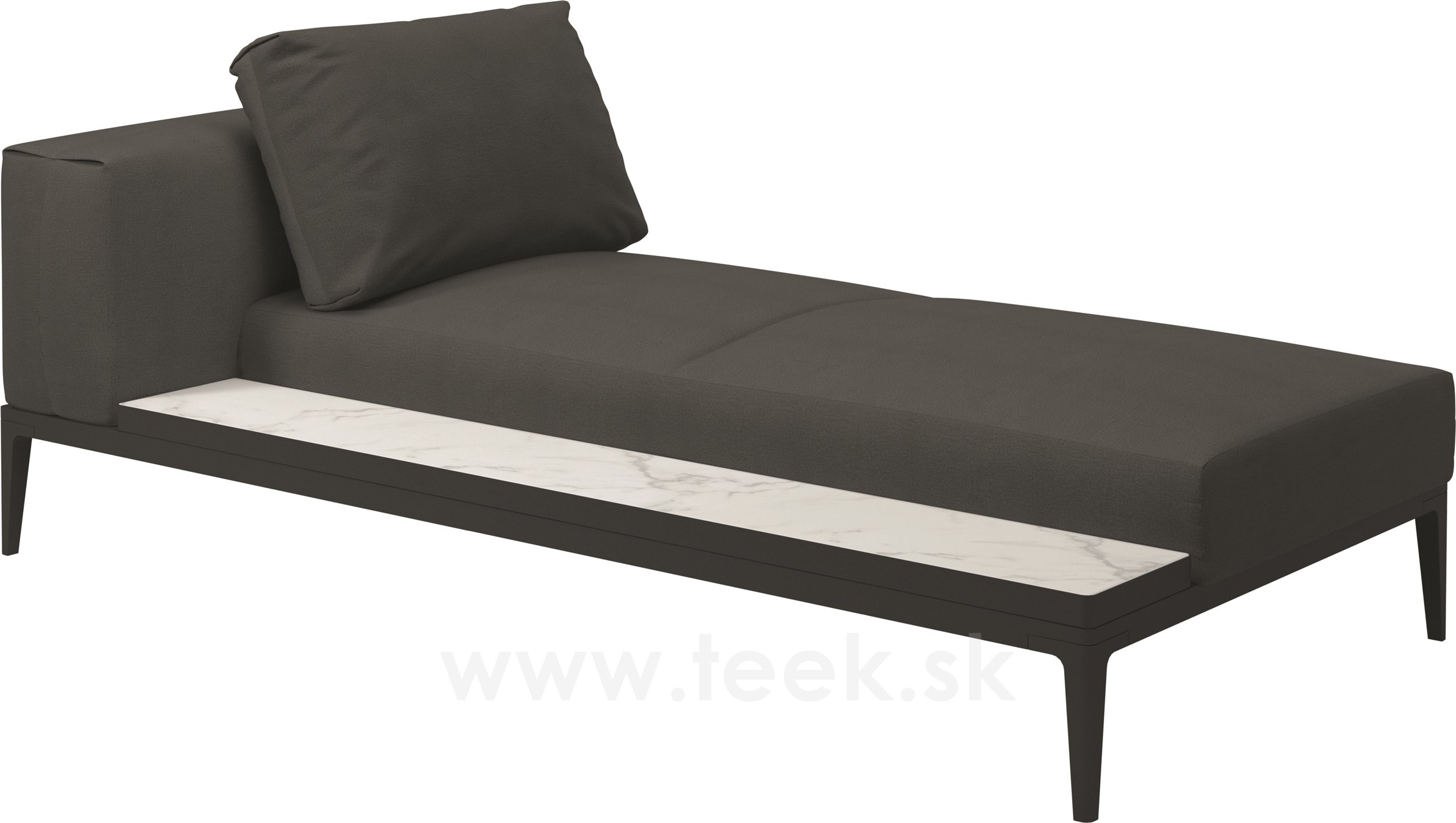 Lehátkový díl 1-místný pravostranný/levostranný s keramickým stolkem Grid, Gloster, 206x103x85 cm, rám hliník barva java, keramika dekor Emperor, sedáky kat. B barva dle vzorníku