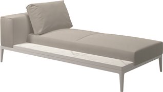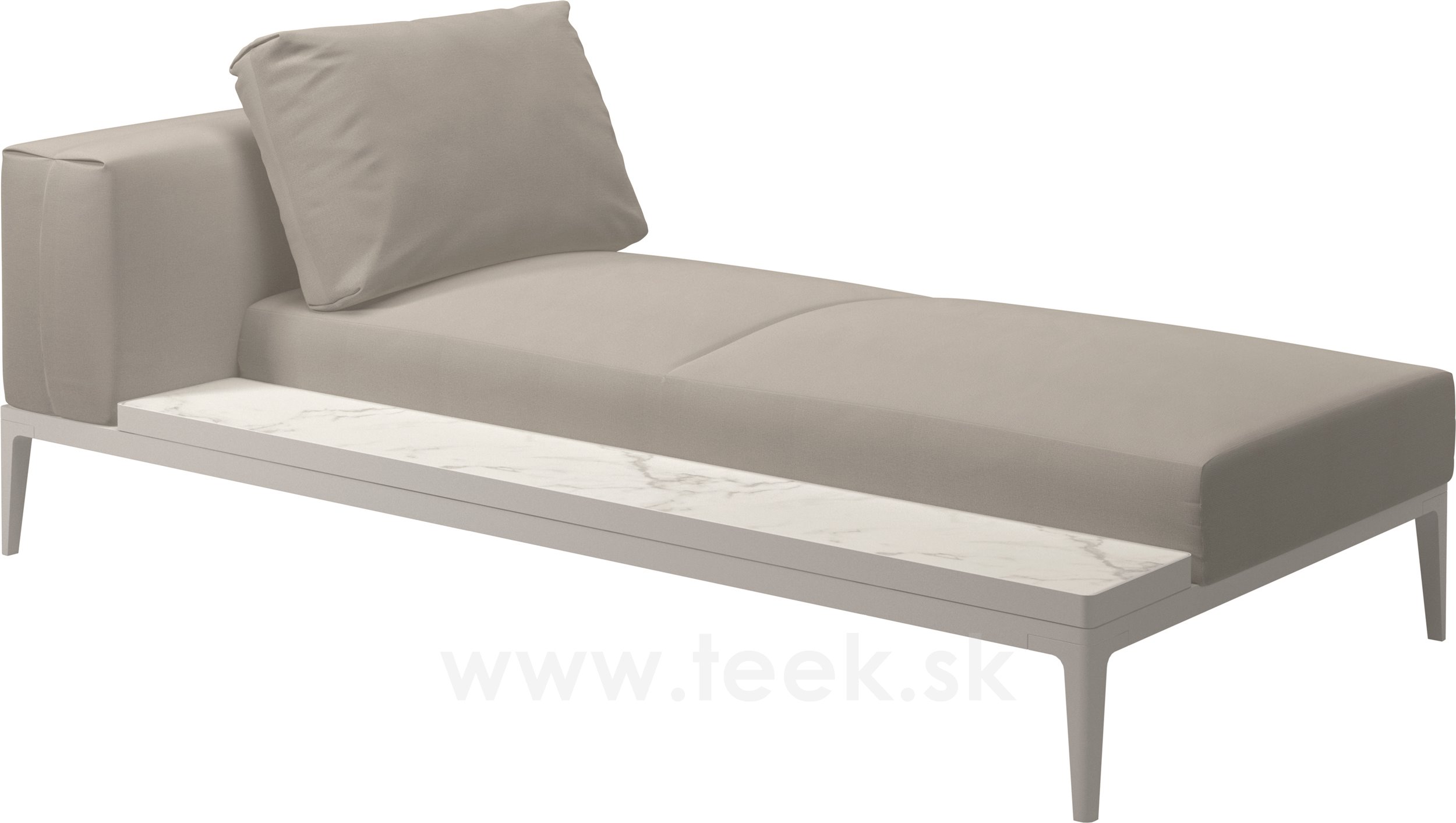 Lehátkový díl 1-místný pravostranný/levostranný s keramickým stolkem Grid, Gloster, 206x103x85 cm, rám hliník barva white, keramika dekor Bianco, sedáky kat. C barva dle vzorníku