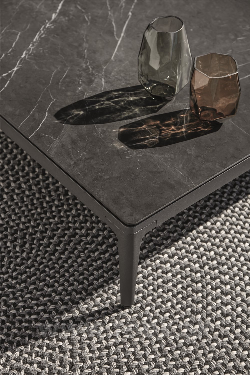 Lehátkový díl 1-místný pravostranný/levostranný s keramickým stolkem Grid, Gloster, 206x103x85 cm, rám hliník barva meteor, keramika dekor Nero, sedáky kat. C barva dle vzorníku