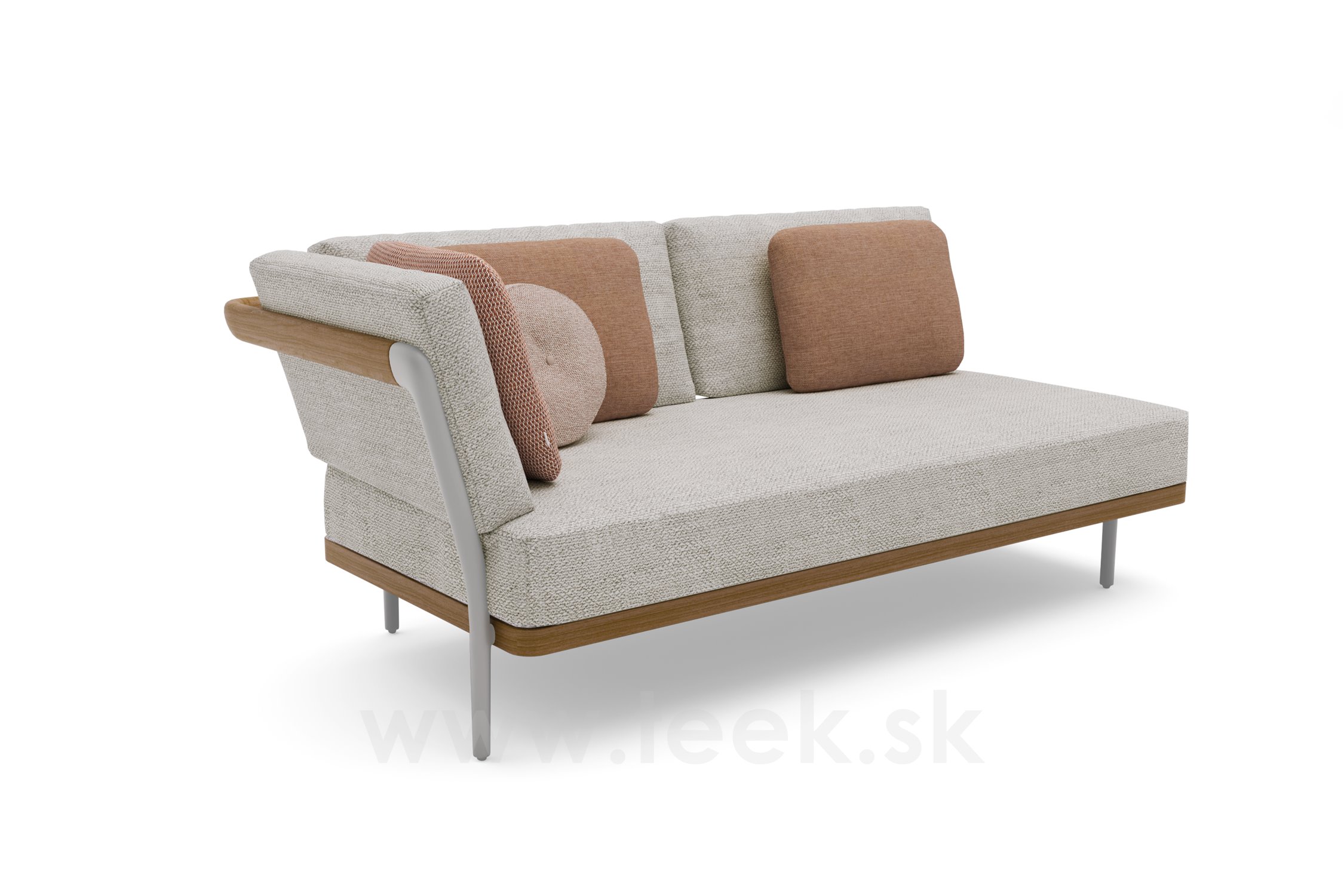 Pravostranný ukončovací díl Flows, Manutti, 176x83x73 cm, rám hliník šedobéžová flint a teak, rám bez sedáků