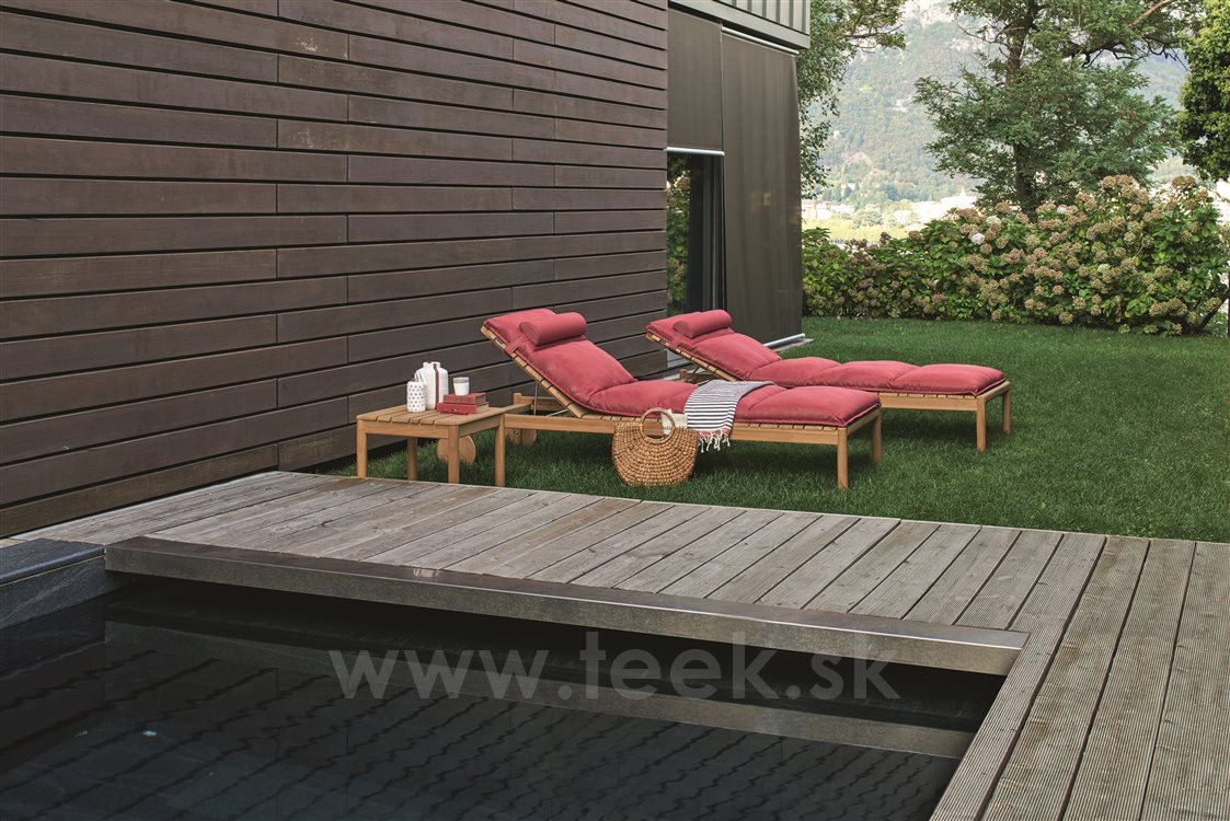 Kolekcia záhradných ležadiel Varaschin Barcode. Lehátka sú vyrobené z masívneho teakového dreva. Pre väčšie pohodlie odporúčame objednať aj vankúše, ktoré sú vyrobené z odolných látok s výplňou z rýchloschnúcej peny. Preto môže byť záhradné ležadlo vonku po celý rok bez toho, aby ste museli čistiť vankúš od dažďa.