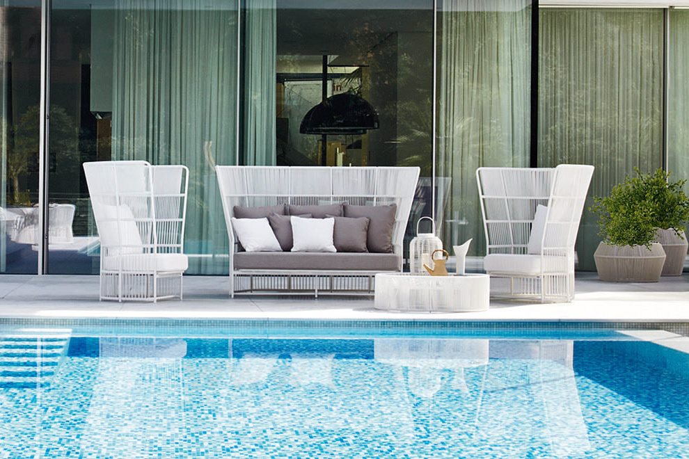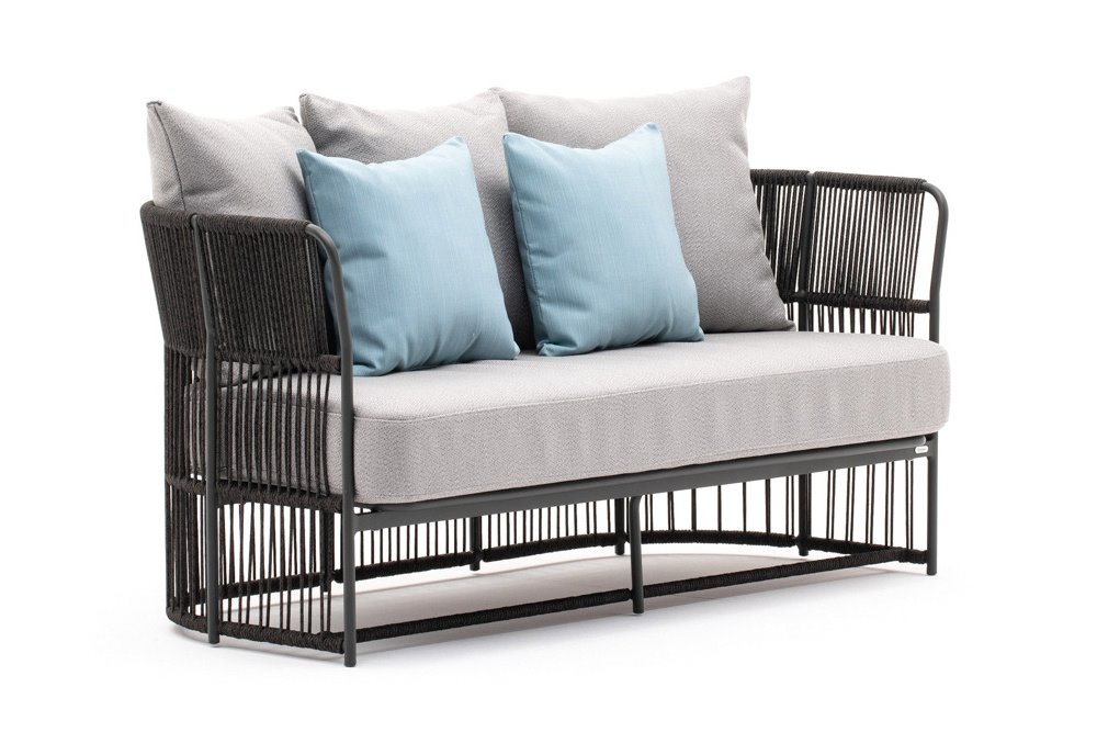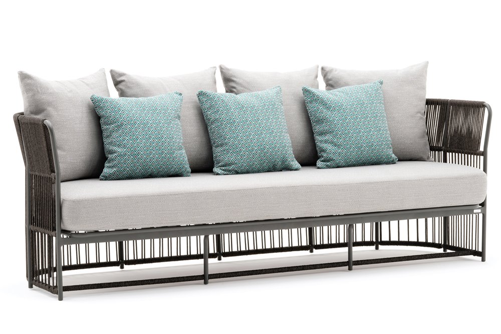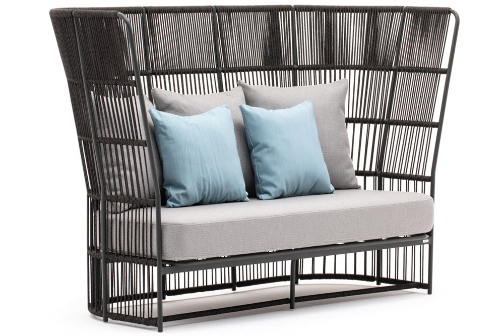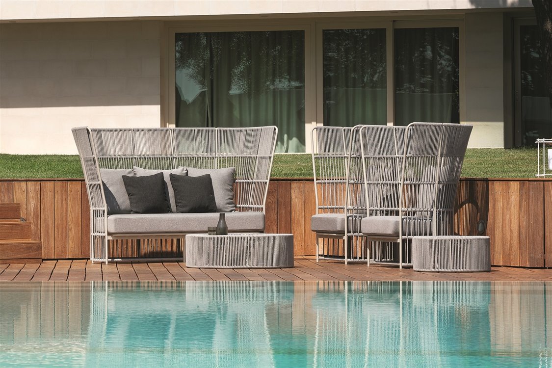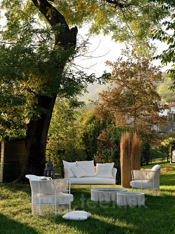 Kolekcia sedacieho nábytku Tibidabo od spoločnosti Varaschin. Konštrukcia záhradného nábytku je vyrobená z lakovaného hliníka s káblovým výpletom.