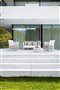Vankúše na sedenie sú vyrobené z outdoorových tkanín s rýchloschnúcou penovou výplňou, takže sedací nábytok môže zostať vonku po celý rok bez potreby chrániť ho pred dažďom.