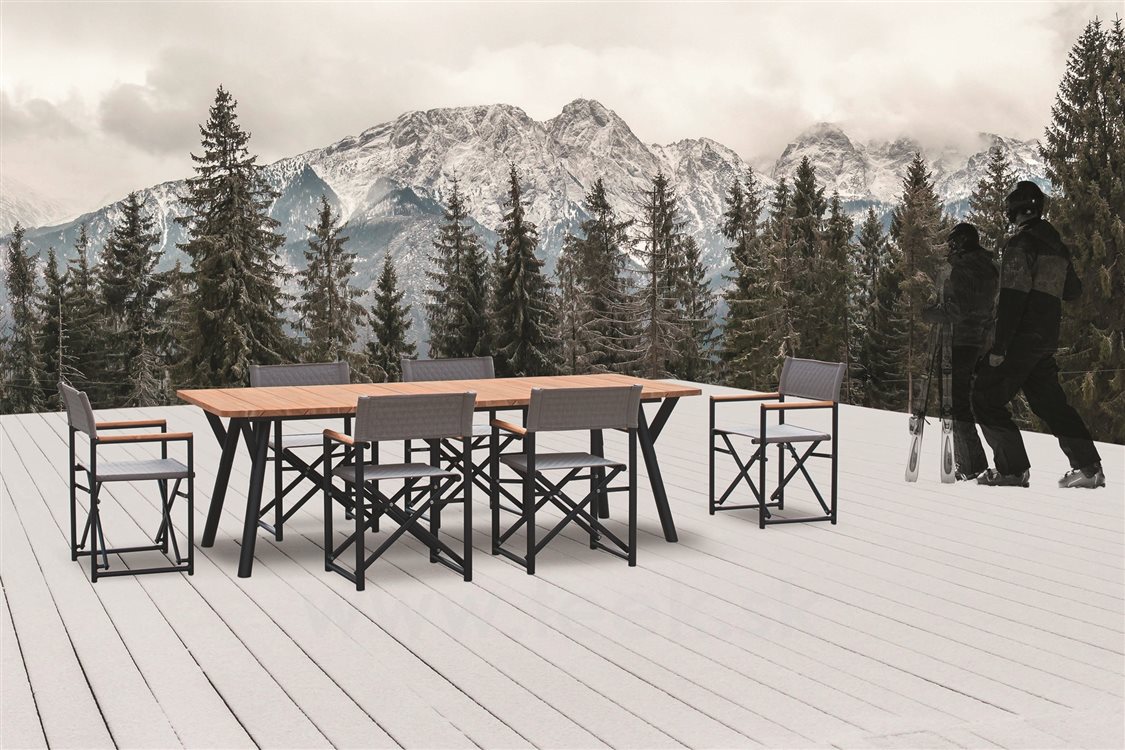 Kolekcia záhradných jedálenských stoličiek a kresiel Victor od spoločnosti Varaschin. Konštrukcia stoličiek je vyrobená z lakovaného hliníka, čalúnenie je textilné a niektoré z nich sú vyrobené z outdoorovej tkaniny. Kolekcia obsahuje záhradnú stohovateľnú stoličku, stohovateľné kreslo a skladacie jedálenské stoličky s čalúnením z textilu alebo vonkajšej tkaniny, s podrúčkami z teakového dreva alebo hliníka a jedálenské stoly rôznych rozmerov a v dvoch výškach 74 cm a 67 cm.