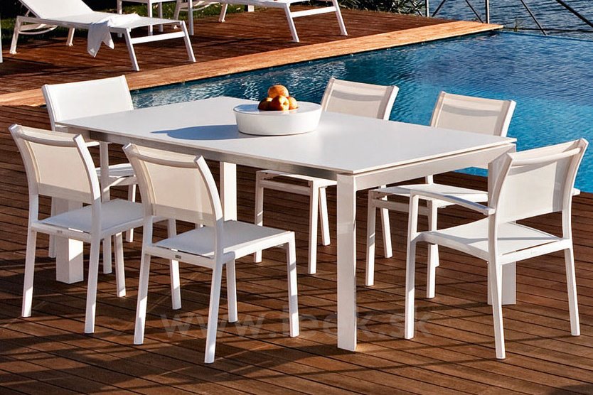 Záhradné jedálenské stoličky možno doplniť ležadlami z rovnakej kolekcie
