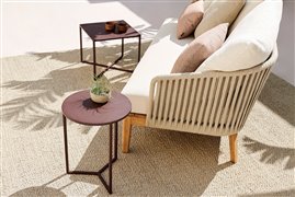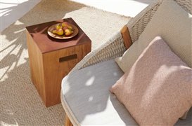 Shindi outdoor carpet from Tribu woven from coated polyester. Available in 3 different colours.