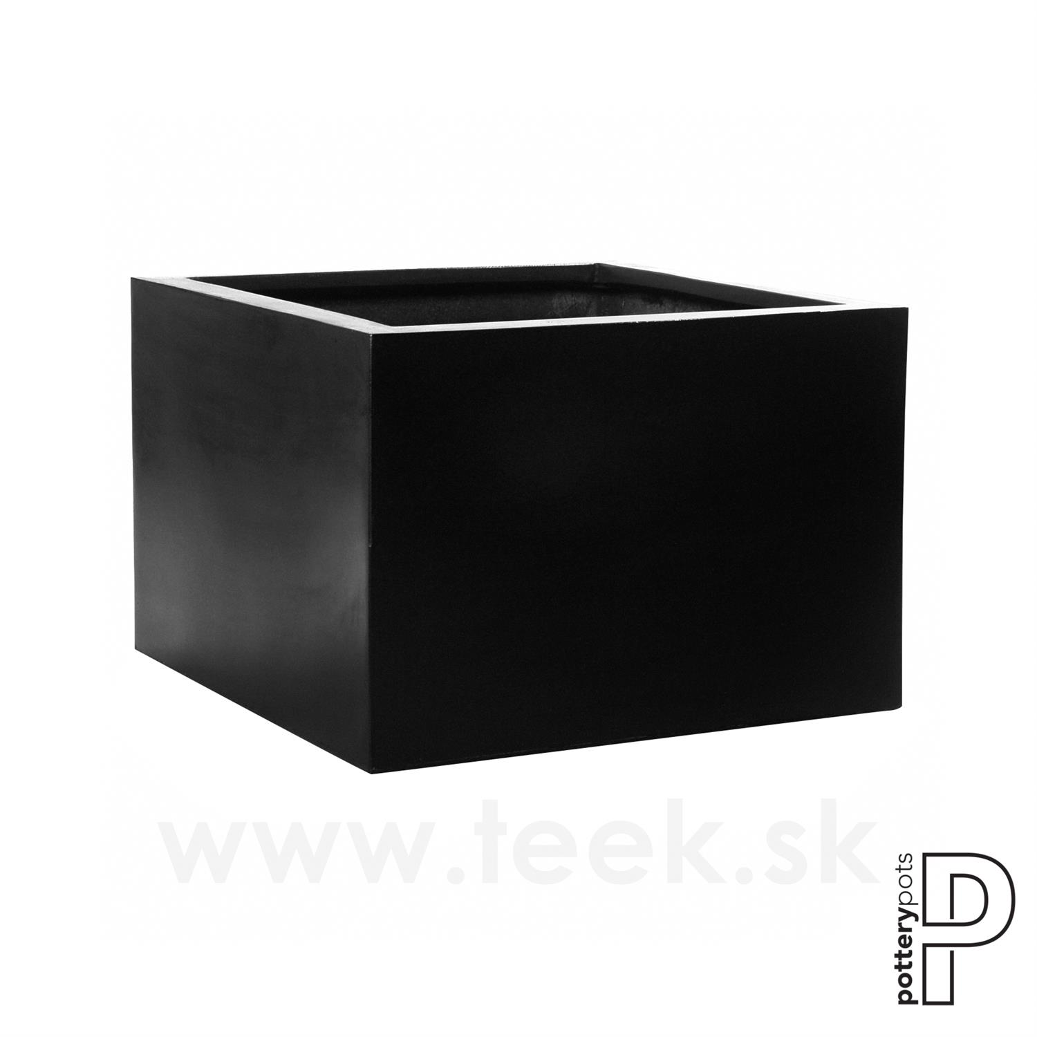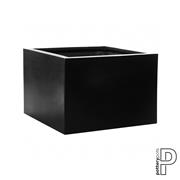 Štvorcový vonkajší kvetináč Jumbo stredne vysoký XXL, čierny, kolekcia Natural, kompozit Fiberstone, d 140 cm x š 140 cm x v 82 cm, objem cca 1568 l