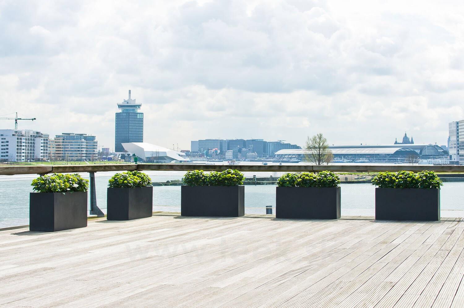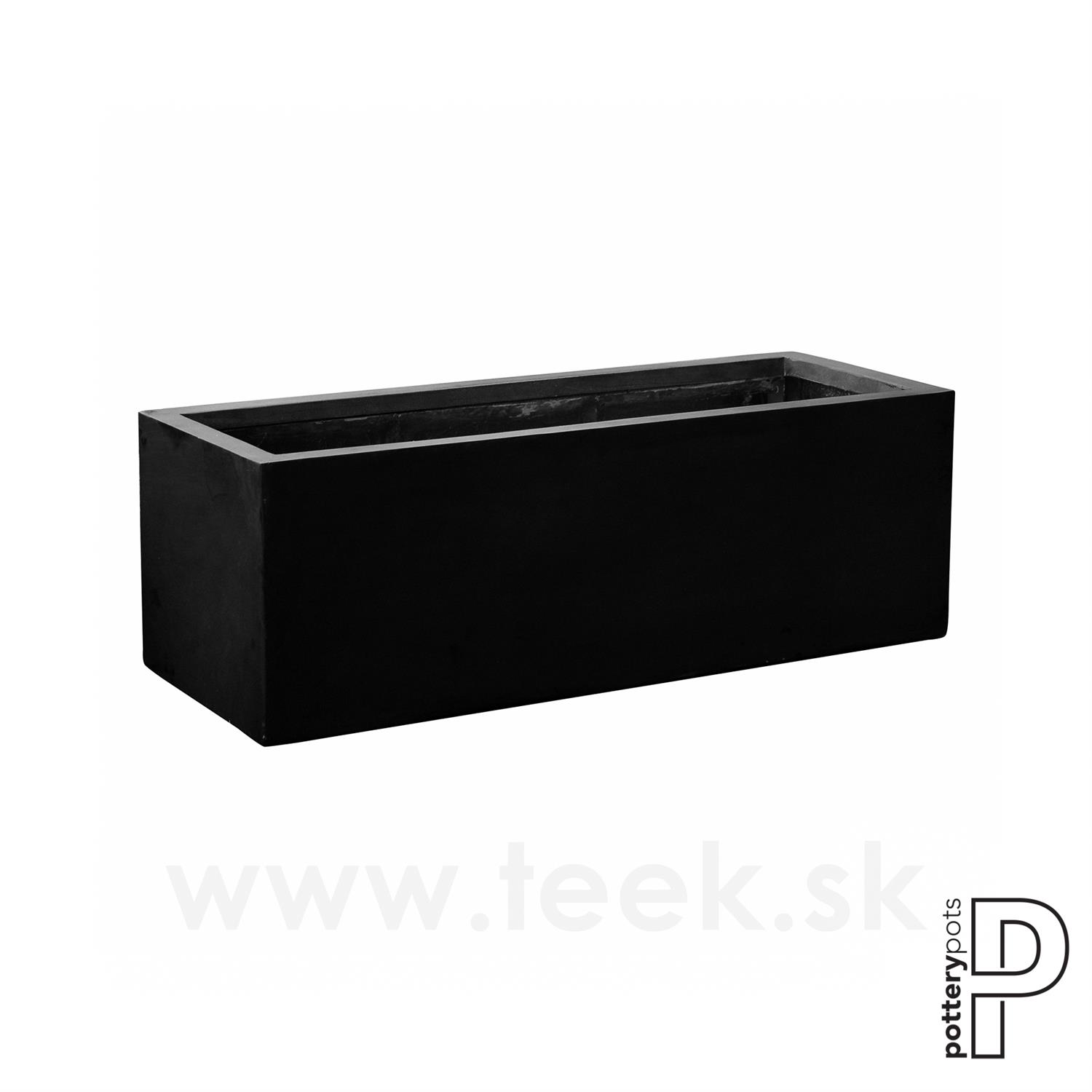 Vonkajší obdĺžnikový kvetináč Jumbo Jort M, čierny, kolekcia Natural, kompozit Fiberstone, d 150 cm x š 60 cm x v 50 cm, objem cca 450 l