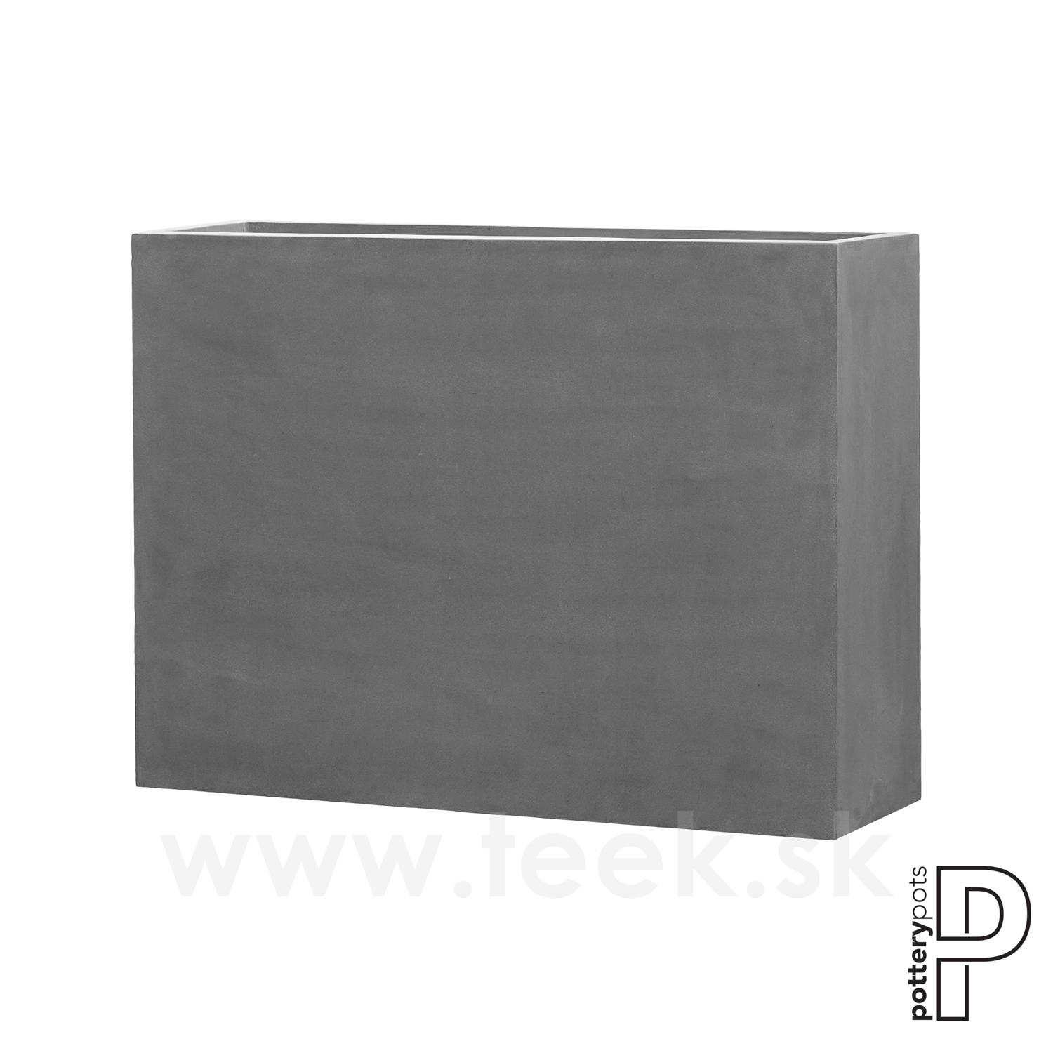 Outdoor rectangular planter Jort Slim L, Grey, collection Natural, Fiberstone composite, l 124 cm x w 33,5 cm x h 90 cm, volume approx. 373 l