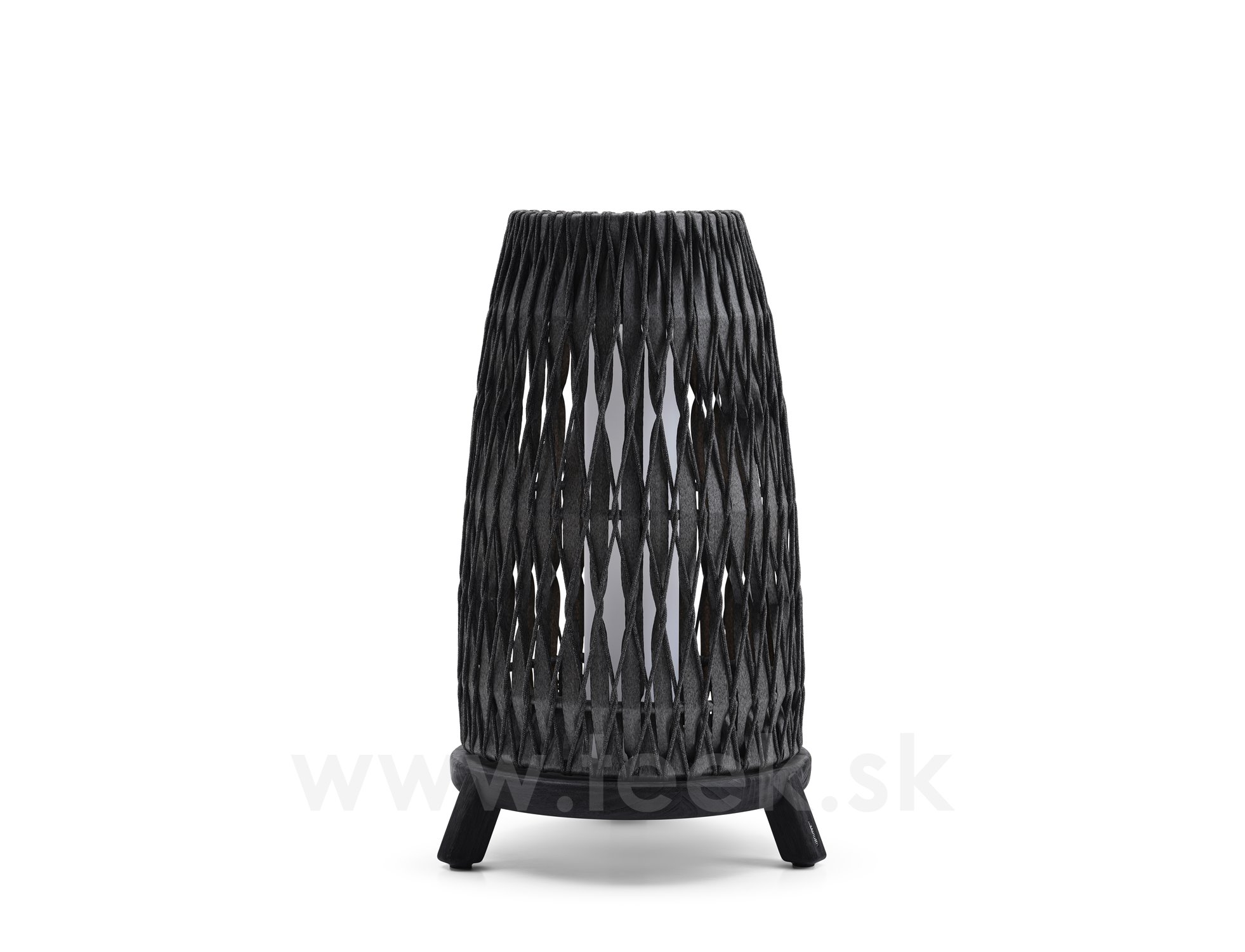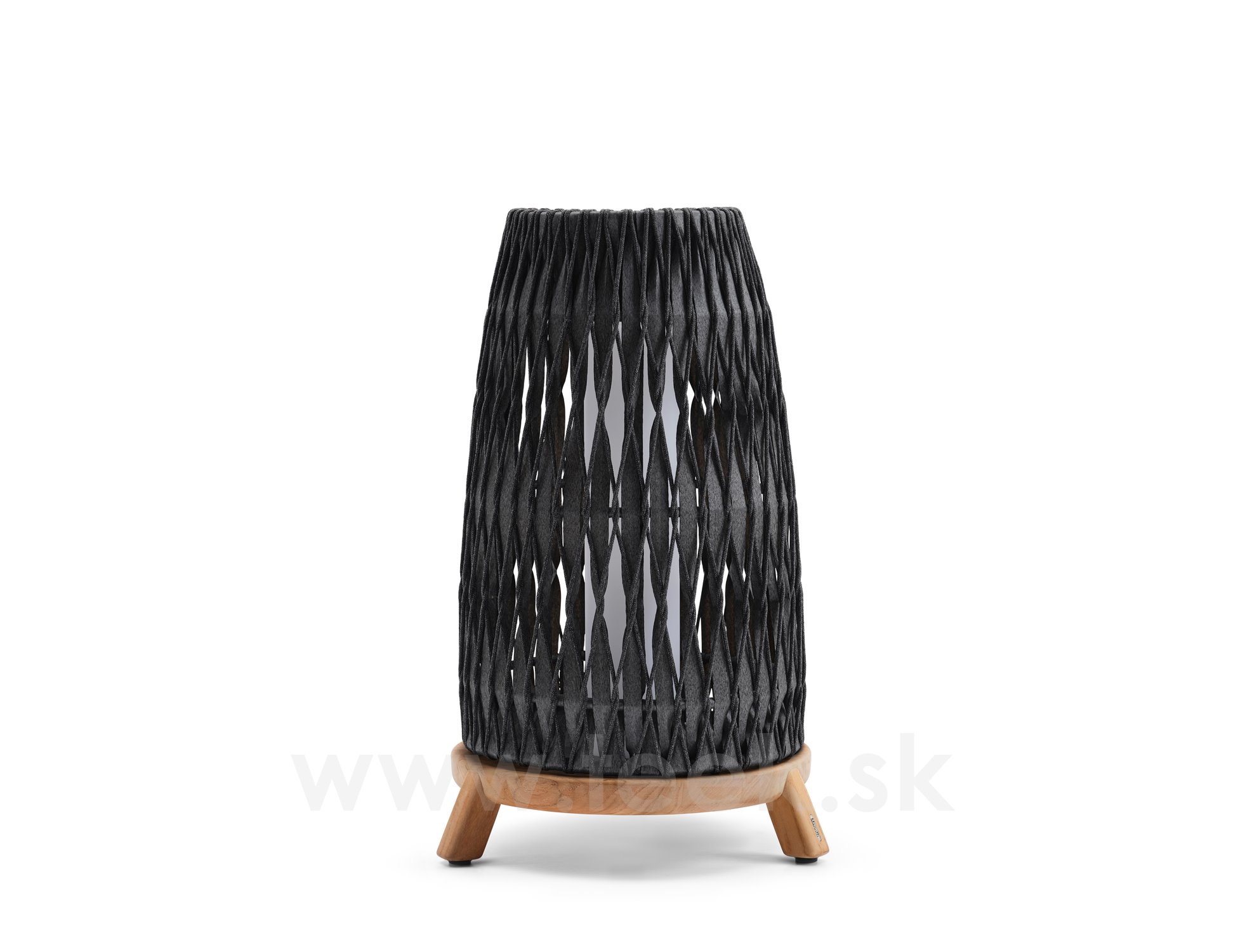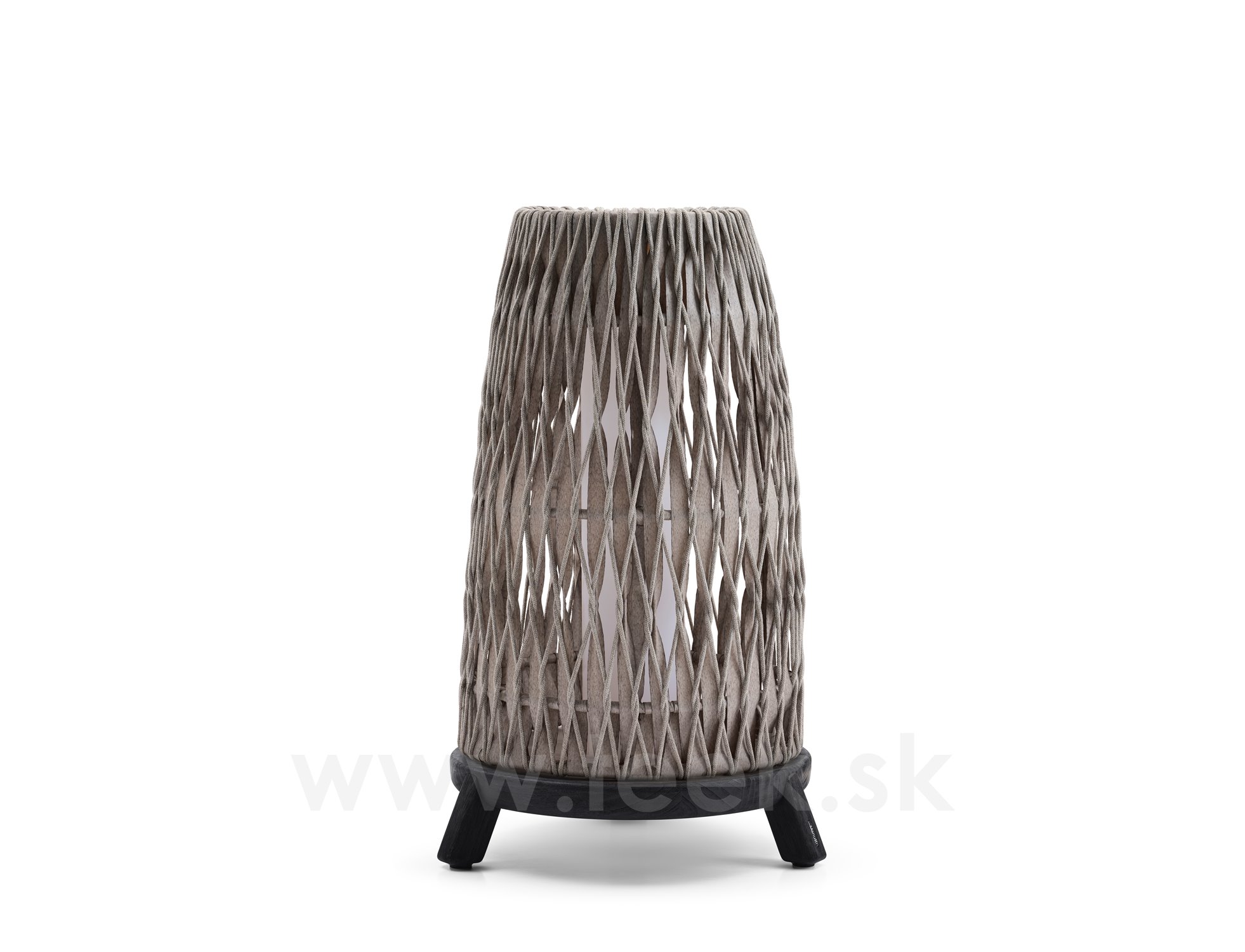 Velká venkovní lucerna Sandua, Manutti, rám černě mořený teak, výplet lanko dicord pepper, včetně LED světla, bez nabíječky a dálkového ovládaní, volitelné teplé i studené světlo