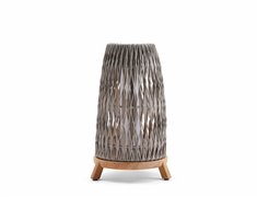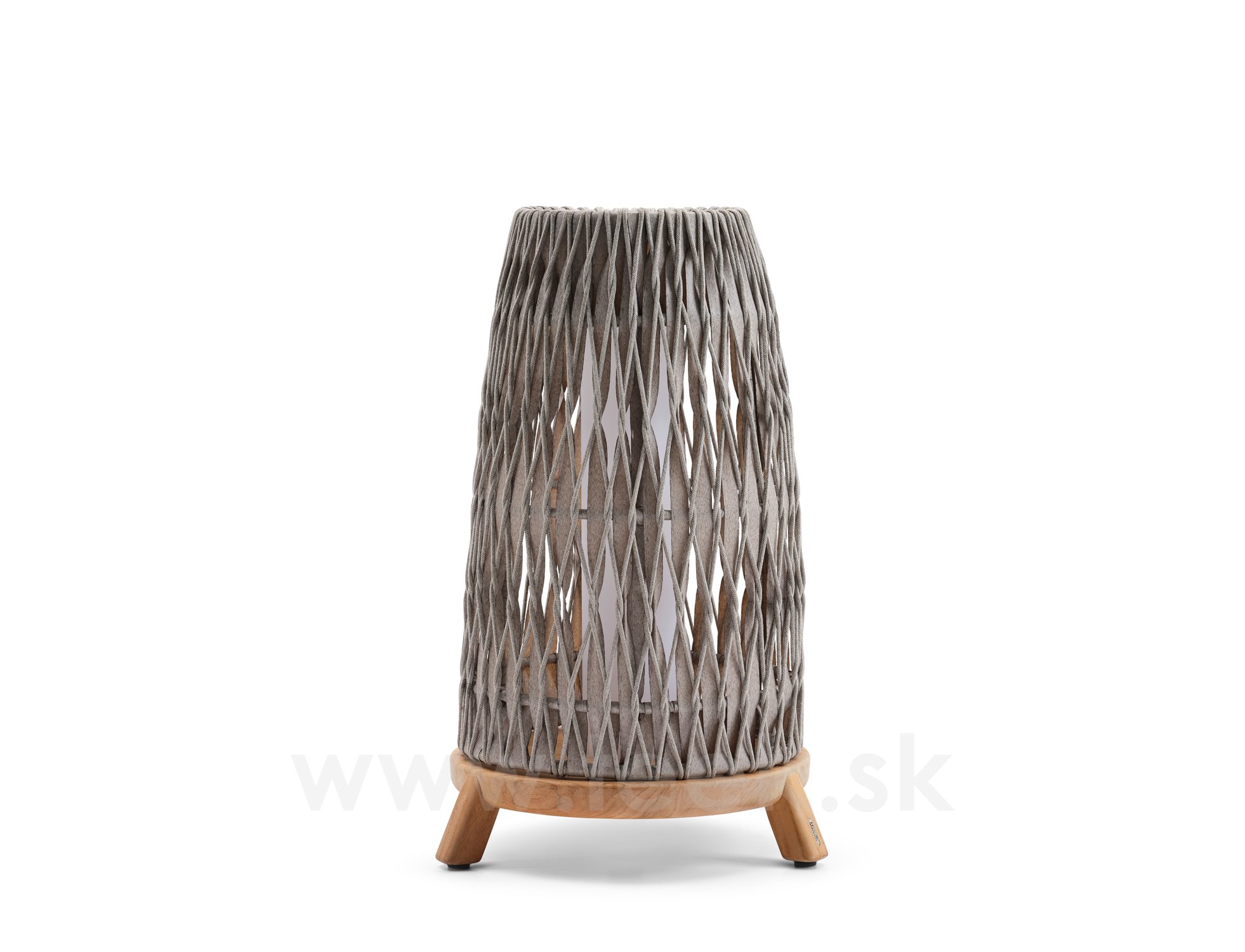 Velká venkovní lucerna Sandua, Manutti, rám teak, výplet lanko dicord pepper, včetně LED světla, bez nabíječky a dálkového ovládaní, volitelné teplé i studené světlo