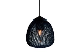 Venkovní závěsné světlo Monsieur Madame Cachet značky Tribu. Širm je opleten háčkovaným vzorem z polyolefinového lanka. Světlo má LED žárovku.