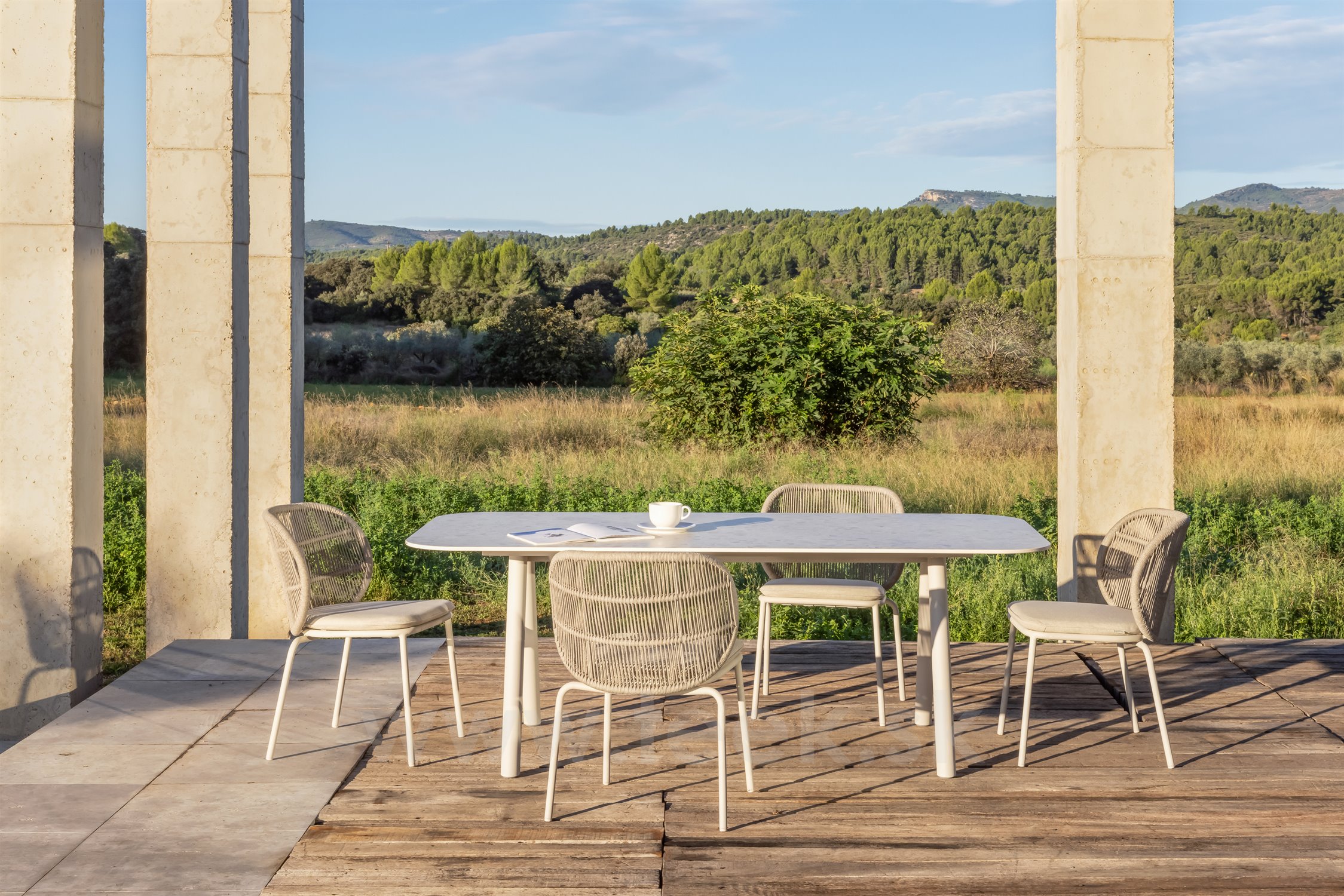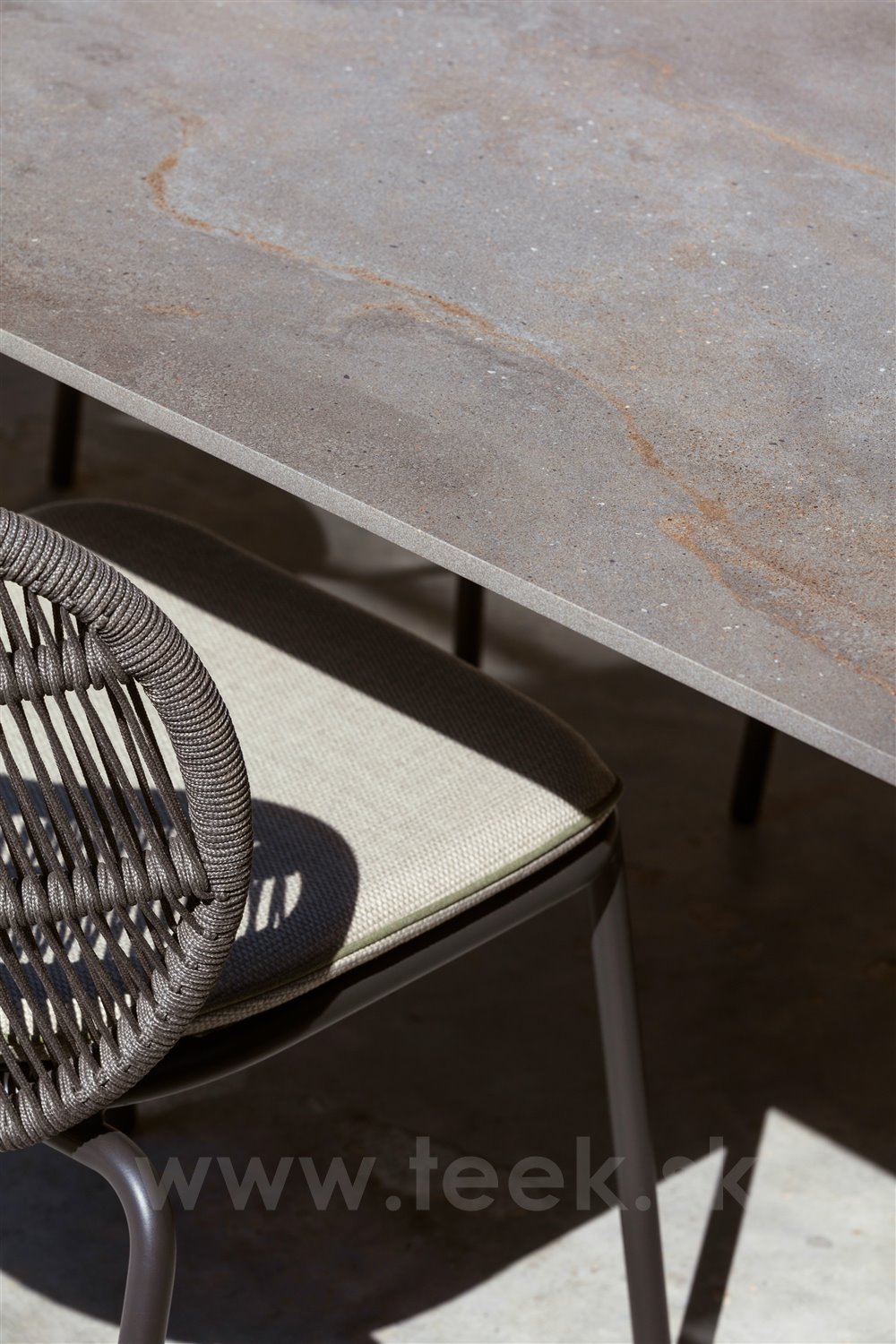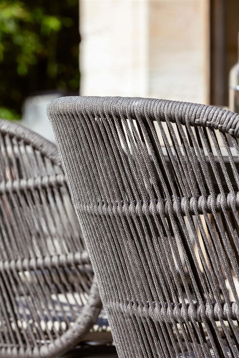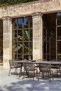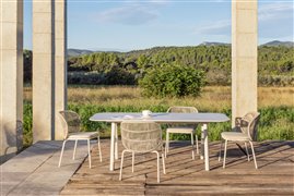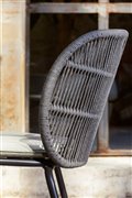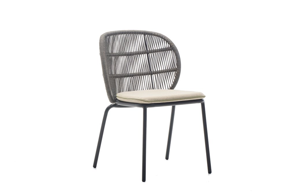 Jedálenské kreslá z lakovaného hliníka s lankovým výpletom.