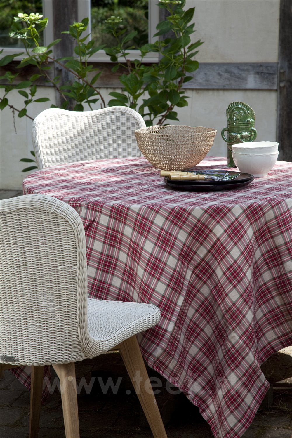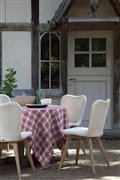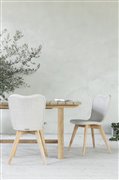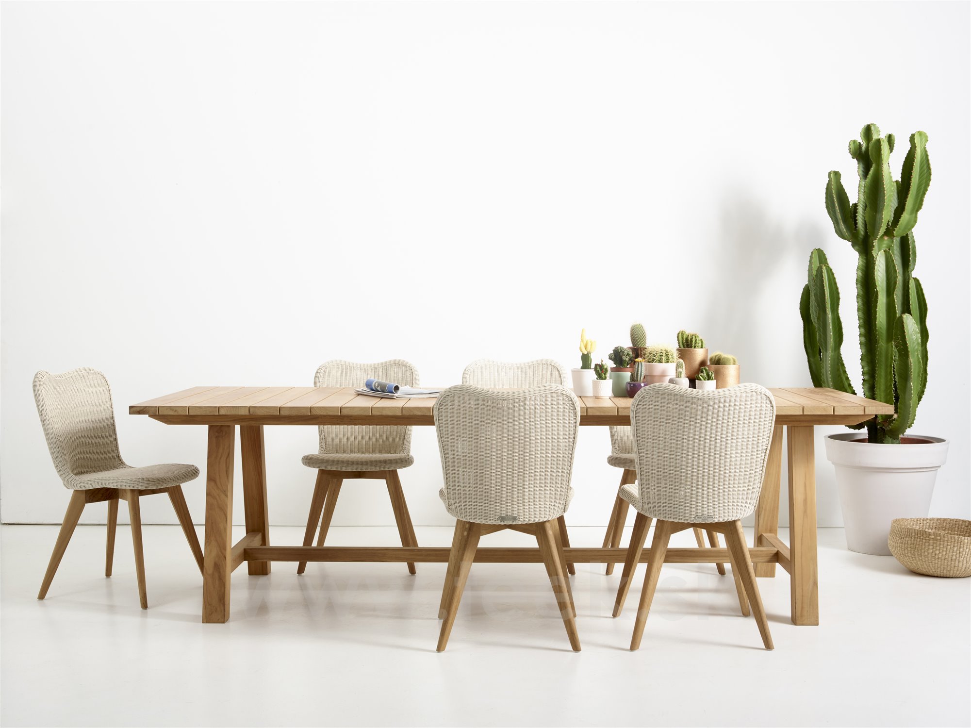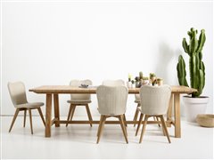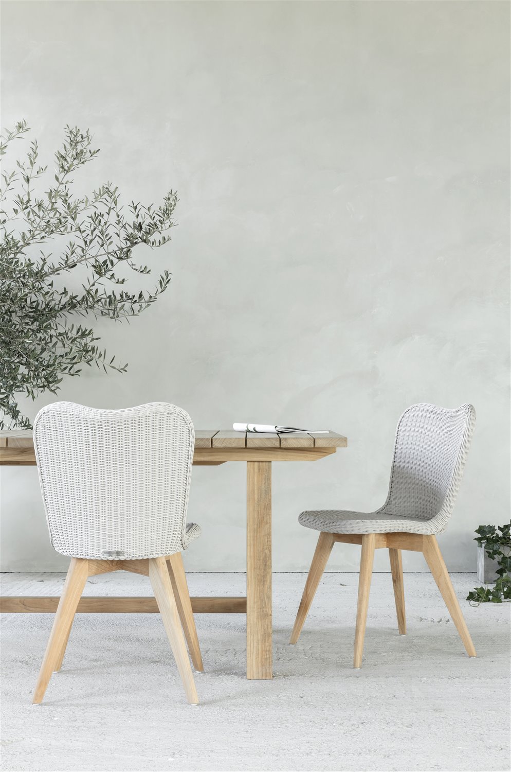 Jedálenská stolička z umelého ratanu s teakovými alebo hliníkovými nohami.