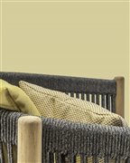 Jak název naznačuje, kolekce "Lento" (italsky pomalý) se zaměřuje na zpomalení. Užívání si la dolce vita při provádění důležitých věcí je přesně to, co měl belgický designér Bertrand Lejoly na mysli při navrhování kolekce Lento. Výrazné kusy venkovního nábytku jsou charakterizovány kombinací přírodního teakového dřeva, polypropylenového provazu a pohodlných polštářů spojených v nízkých designech. Zatímco celkový dojem je uvolněný a relaxační, výrazné masivní nohy z teakového dřeva a vysoké tkané opěrky z provazu dávají kolekci bohatou a poutavou osobnost. Antracitový provaz a příjemný teakový odstín se skvěle hodí k Lento konferenčním stolkům. Stolky mají světlou keramickou deskou, která vytváří prostorný pocit a zároveň přidává strukturu. Ponořte se do pohodlných křesel a odpojte se ve svém vlastním kokonu útulnosti.