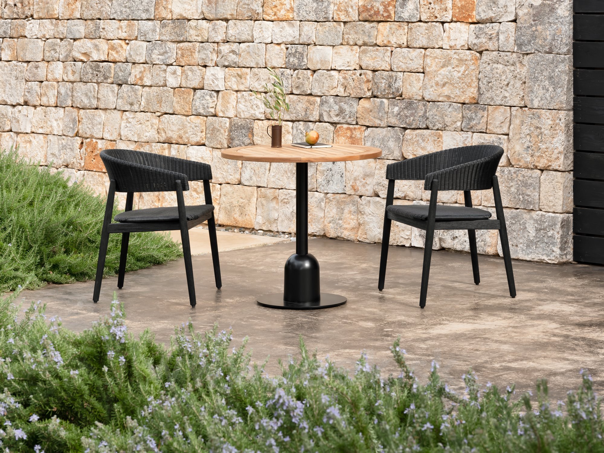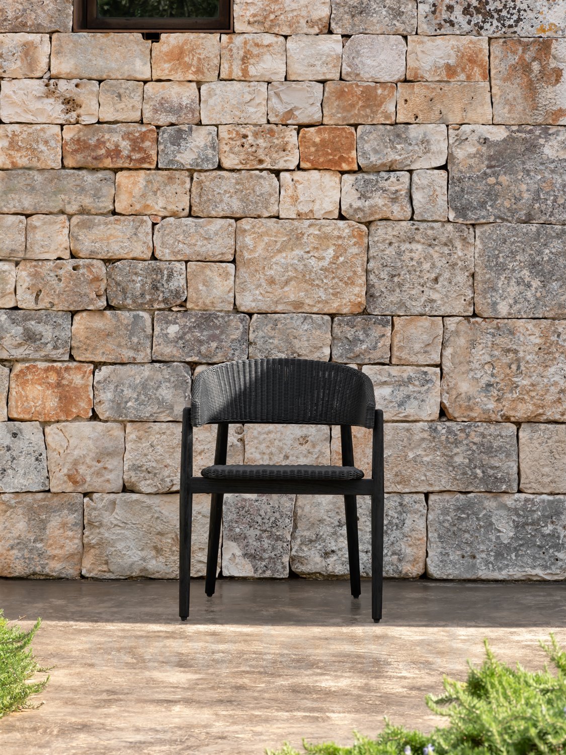 Jedálenské kreslo z čierne moreného alebo prírodného dreva s výpletom z umelého ratanu.
