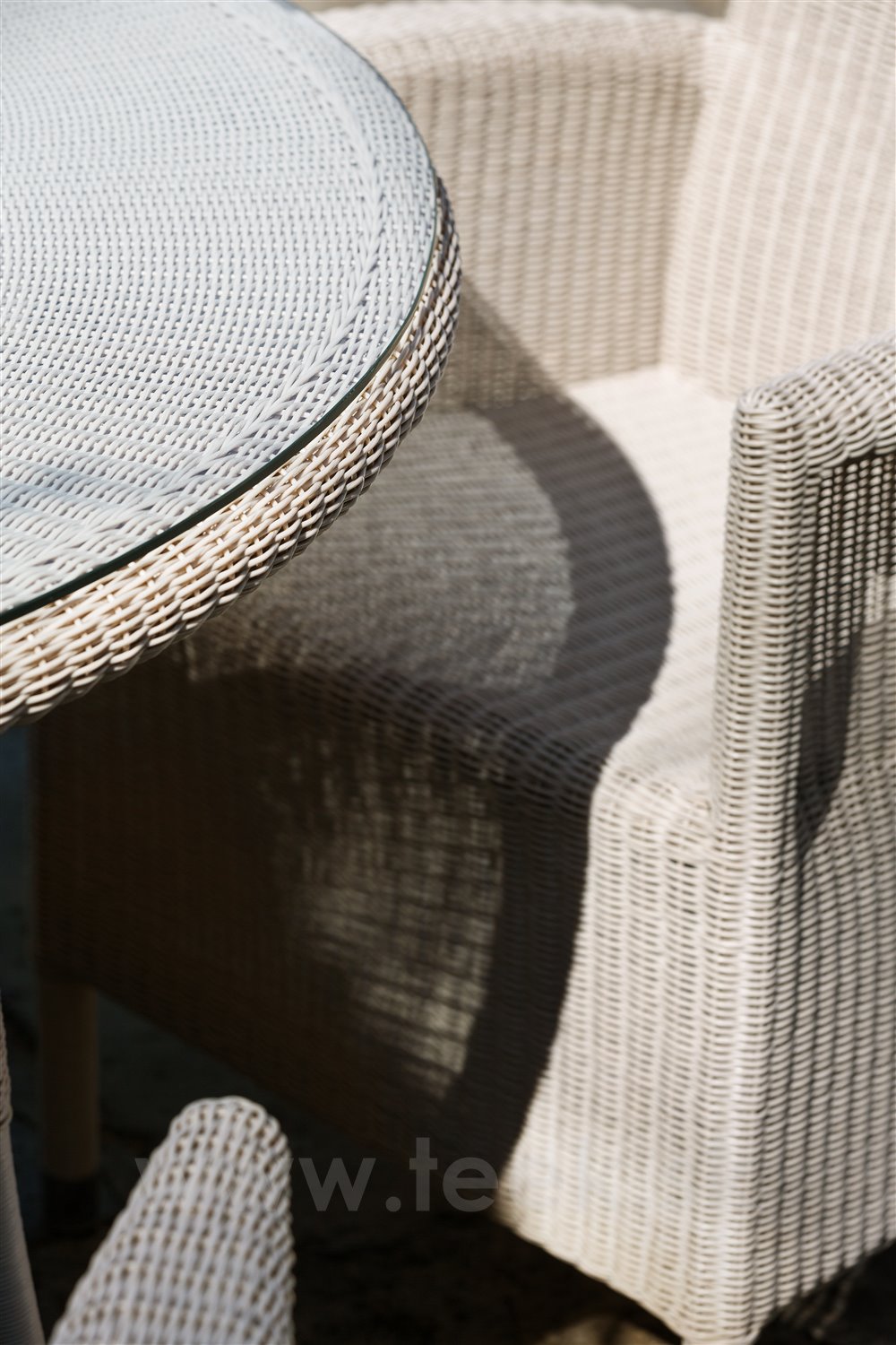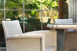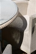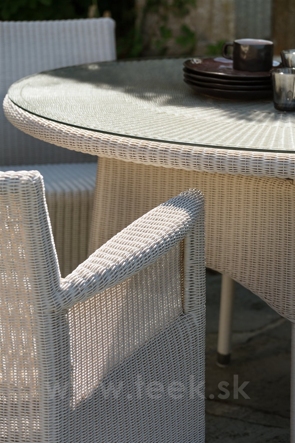 Tradičné jedálenské kreslá a stôl z umelého ratanu.