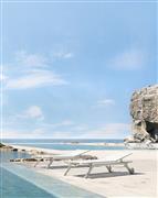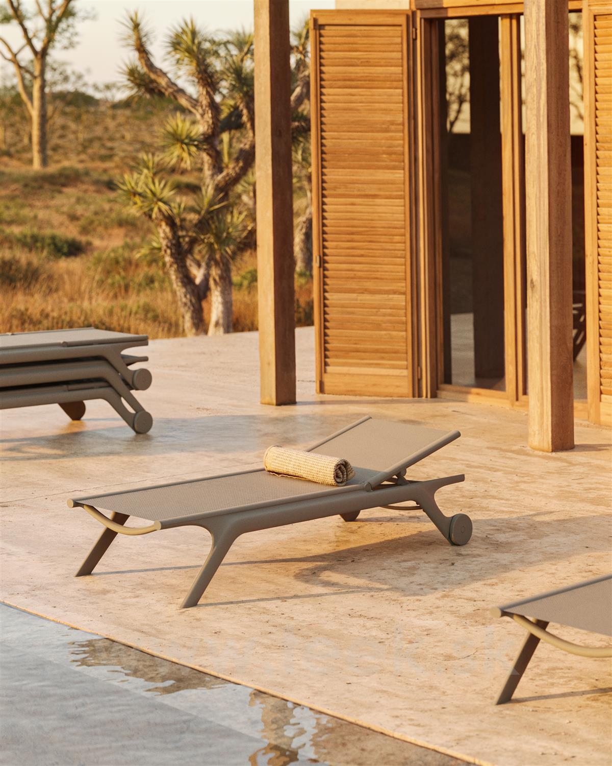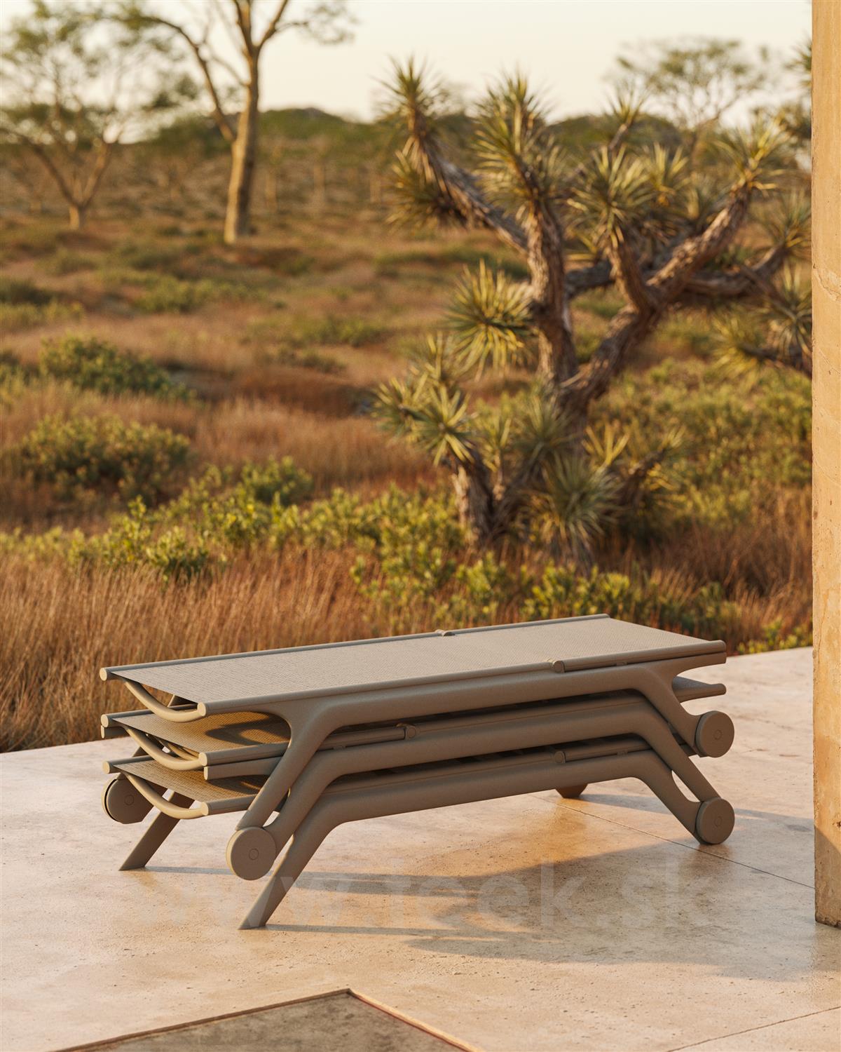 Vonkajšie polohovacie ležadlo s kolieskami.
