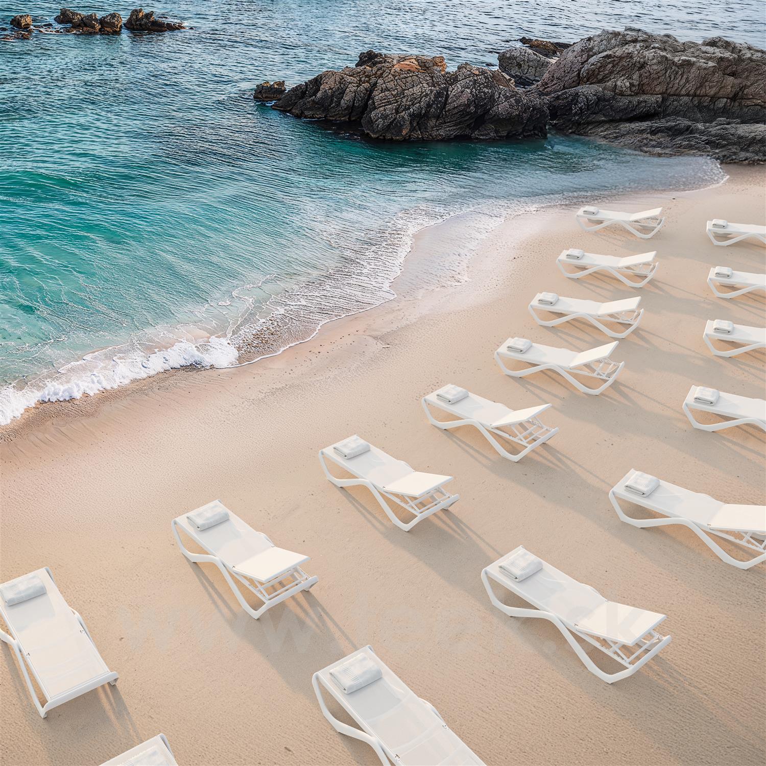 Polohovateľné vonkajšie ležadlo z kolekcie Love od španielskej značky Vondom. Vhodné do hotelov.