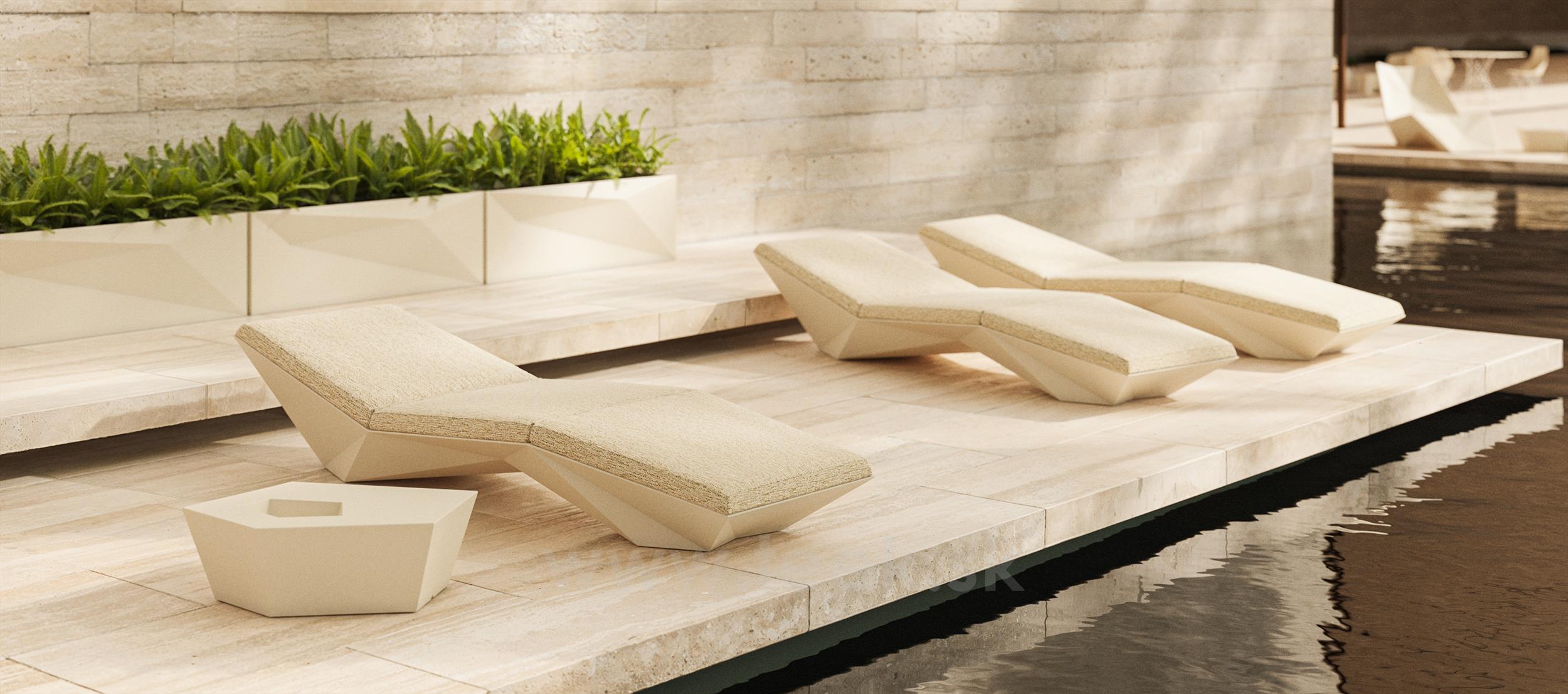 Dizajnové záhradné ležadlá Faz od španielskej značky Vondom.