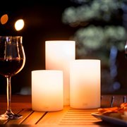 Vonkajší svietnik na čajové sviečky, ktorý sa na letnom slnku neroztopí a je na nerozoznanie od skutočnej sviečky.