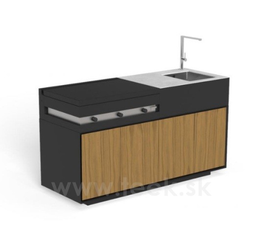 Kuchynský modul s plynovým grilom a drezom Tikal, 160x60x90 cm, čierne lakované dvierka, keramická doska sivá (bez nadstavcov)