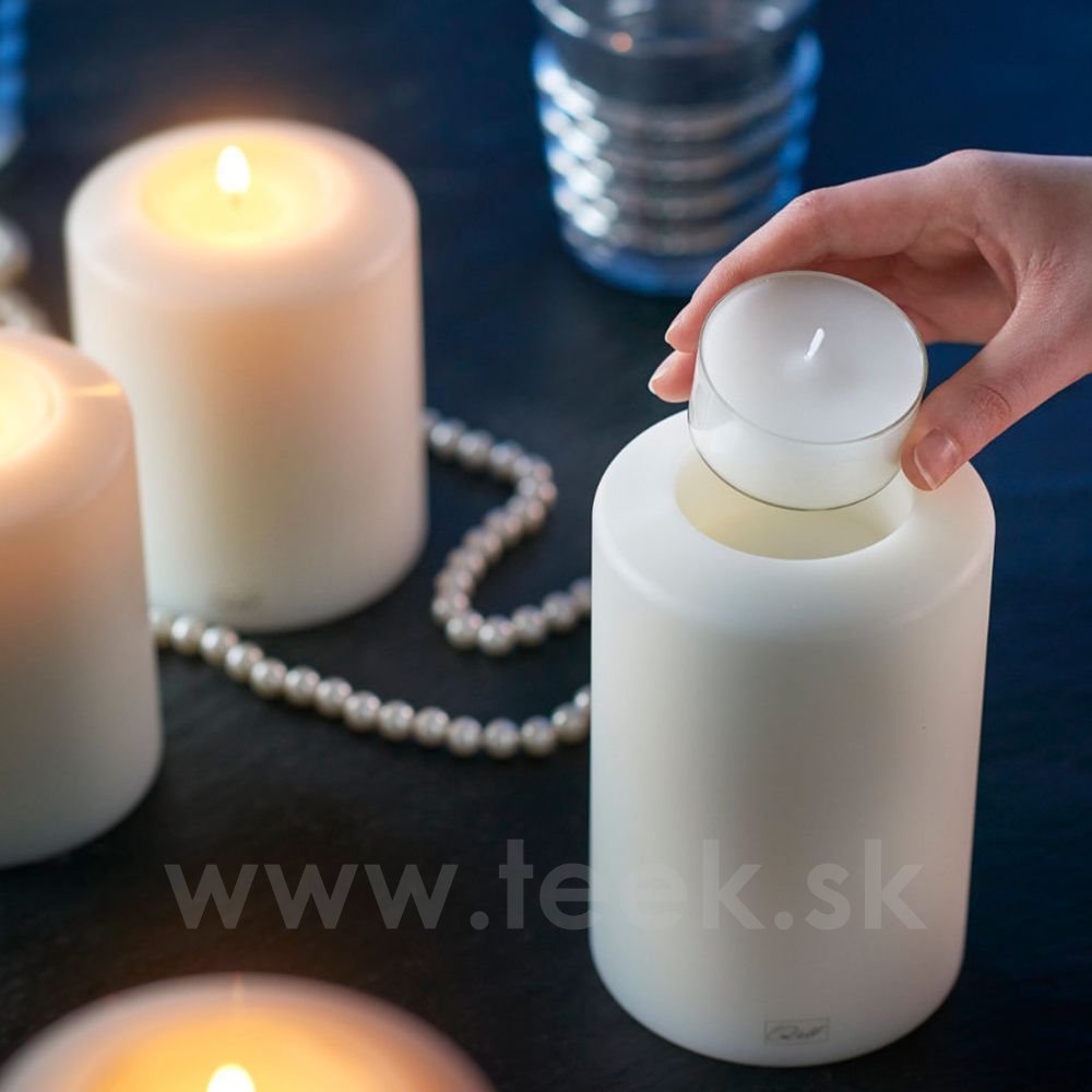 - Priemer: 10 cm, výška 30 cm. - Materiál: vysokokvalitný UV stabilný plast, vhodný do umývačky riadu do 60 °C. - Robustná konštrukcia, odolná voči teplotám od -50 °C do +80 °C. - Vyzerá ako vosková sviečka. - Balenie obsahuje jednu originálnu čajovú sviečku. - Veľkosť otvoru na vloženie čajovej sviečky: priemer 56 mm, výška 27 mm. - Do otvoru v hornej časti jednoducho vložte bežnú alebo špeciálnu čajovú sviečku (odporúčame zakúpiť originálne sviečky, ktoré ponúkame ako príslušenstvo), plameň krásne osvetlí mliečne biely obal.