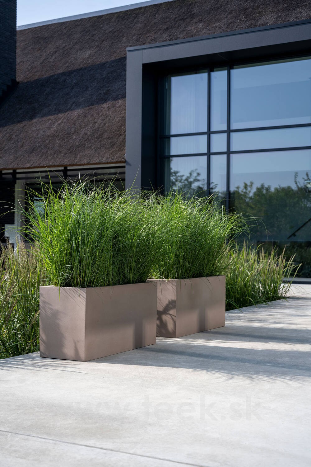 Vonkajší kvetináč obdĺžnikový Jort M, Taupe (farba béžová taupe) kolekcia Natural, kompozit Fiberstone, d 100 cm x š 40 cm x v 50 cm, objem cca 200 l