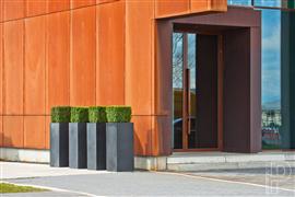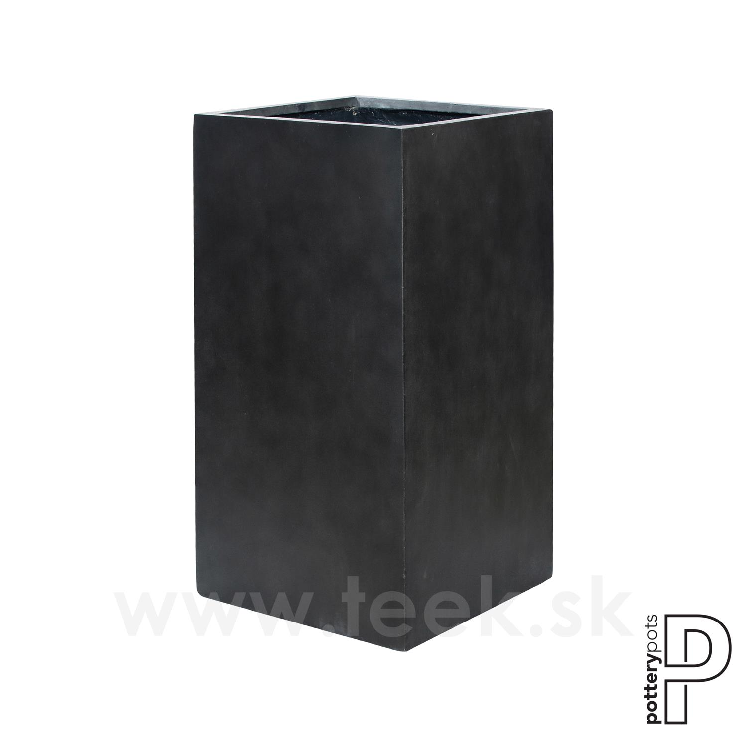 Obdĺžnikový vonkajší kvetináč Bouvy L, Charcoal cement (tmavosivá), kolekcia Cement, materiál Ficonstone, d 43,5 cm x š 43,5 cm x v 80 cm, objem cca 144 l
