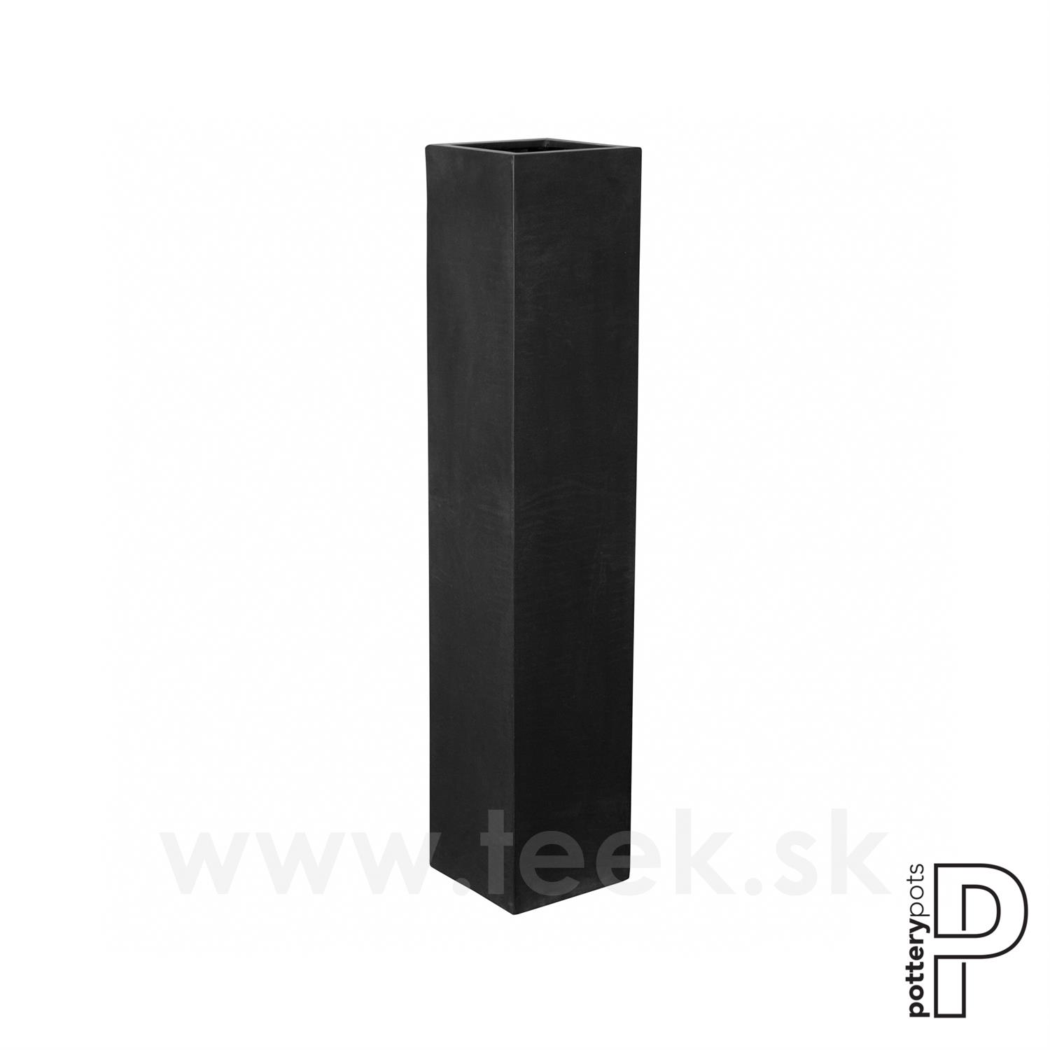 Vonkajší obdĺžnikový kvetináč Yenn M, čierny, kolekcia Natural, kompozit Fiberstone, d 25 cm x š 25 cm x v 125 cm, objem cca 78 l