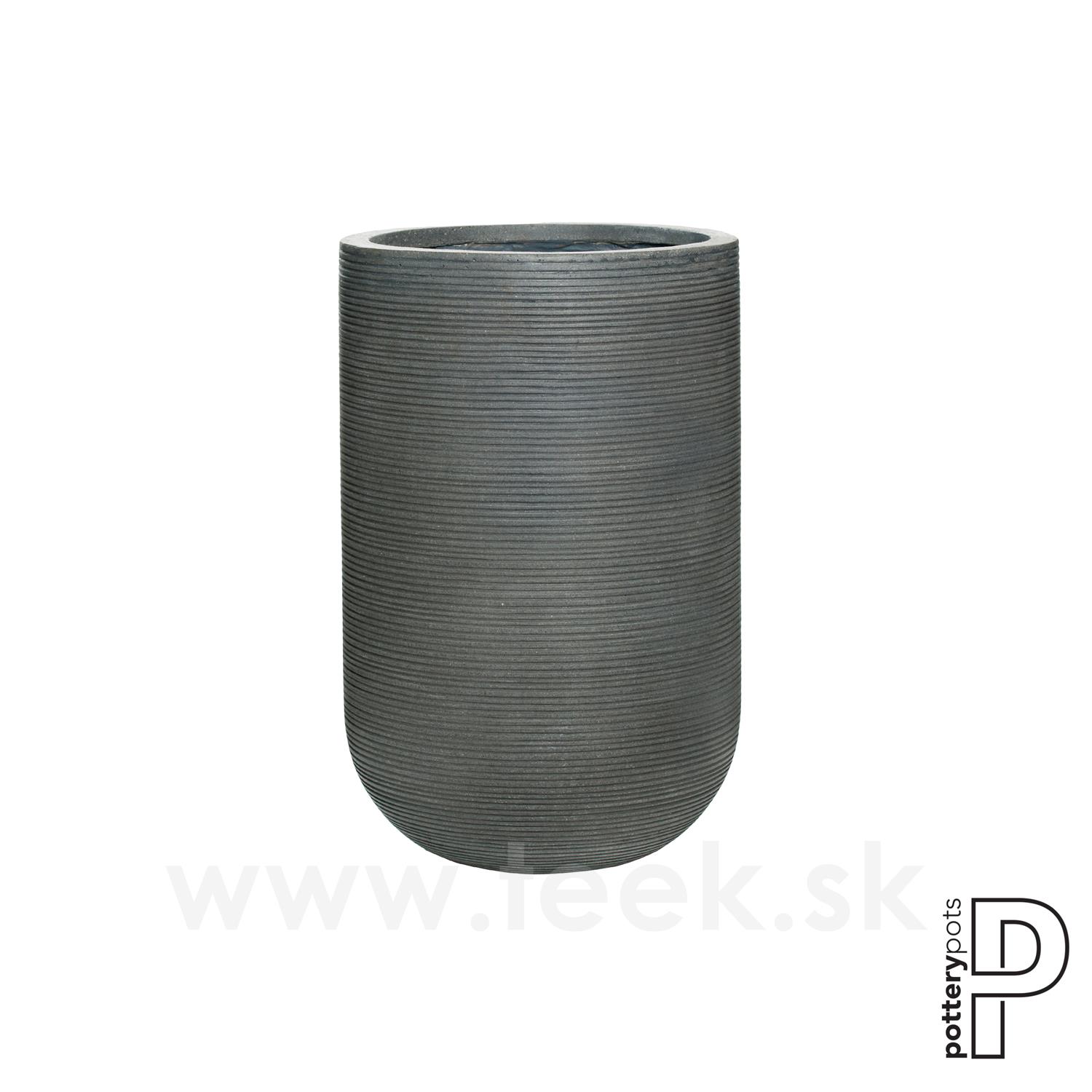 Vonkajší okrúhly kvetináč Cody high M, tmavo sivá, kolekcia Ridged, materiál Ficonstone, priemer 35 cm x v 55 cm, objem cca 49 l