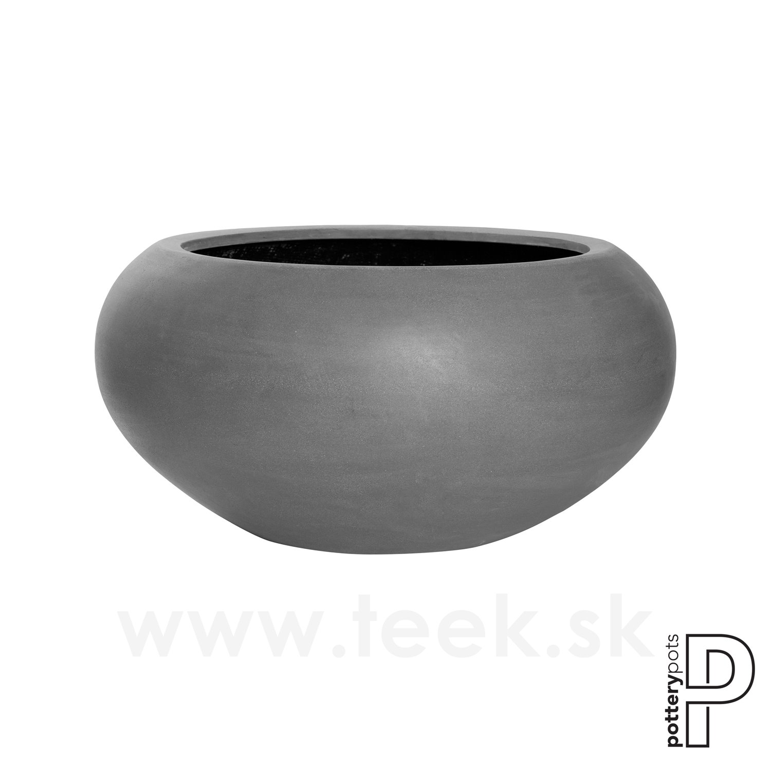 Vonkajší okrúhly kvetináč Cora M, sivý, kolekcia Natural, kompozit Fiberstone, priemer 70 cm x v 36,5 cm, objem cca 113 l