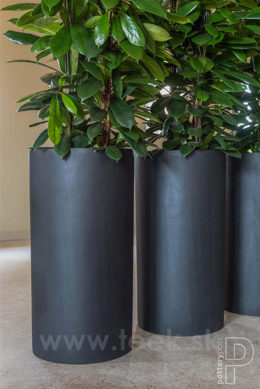 Kruhový vonkajší kvetináč Klax L, čierny, kolekcia Natural, kompozit Fiberstone, priemer 40 cm x v 80 cm, objem cca 100 l