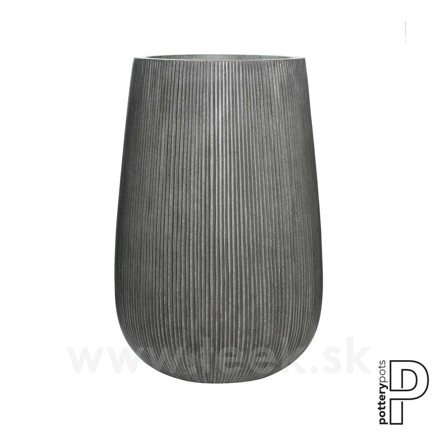okrúhly vonkajší kvetináč Patt high M, tmavosivá farba, kolekcia Ridged, materiál Ficonstone, priemer 44 cm x h 66 cm, objem cca 83 l
