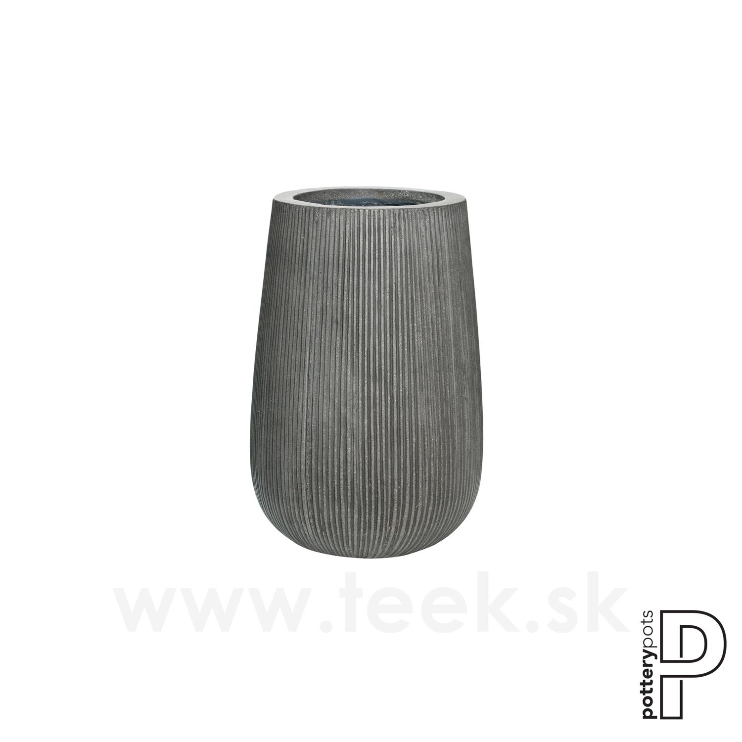 okrúhly vonkajší kvetináč Patt high S, tmavo sivá farba, kolekcia Ridged, materiál Ficonstone, priemer 29 cm x v 43 cm, objem cca 24 l